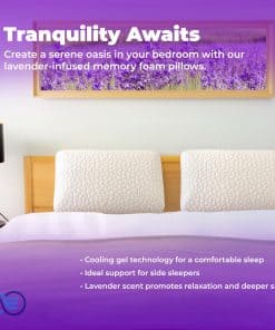 Eleva tu sueño con la Almohada de Espuma Viscoelástica de Gel Refrigerante de Lavanda Omeo, diseñada para brindar un confort excepcional todas las noches.