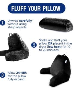 La almohada de respaldo ComfortSpa se envía comprimida. Solo hay que quitar el embalaje; aflojar la espuma triturada agitando durante 5 minutos, o colocarla en la secadora (baja temperatura) durante 5-10 minutos. Permita que la almohada se expanda completamente de 24 a 48 horas. NOTA: ¡El envío en clima frío ralentiza la expansión! Permita las 48 horas completas para una expansión total. La almohada de respaldo ComfortSpa proporciona un cómodo soporte lumbar para sentarse en la cama mientras se lee un buen libro, se ve la televisión o se navega por Internet. Presenta material de grado médico para aquellos en reposo en cama, que sufren de reflujo gastroesofágico o acidez estomacal. Úsala como cuña para elevar la parte superior del cuerpo y ayudarte a estar más cómodo mientras descansas o duermes. La funda cálida y transpirable de las almohadas de lectura ComfortSpa se puede limpiar fácilmente con un paño húmedo, pero es extraíble y lavable a máquina y secadora cuando sea necesario. Presenta un relleno de espuma triturada antiapelmazamiento para una durabilidad de suavidad. Las almohadas de lectura ComfortSpa son totalmente personalizables para adaptarse a tus necesidades individuales. La firmeza es ajustable quitando o añadiendo espuma a través de las cremalleras inferiores. El asa de tela adjunta hace que sea fácil transportar tu almohada de una habitación a otra.