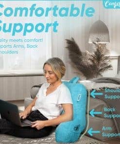ComfortSpa Reading Pillows para Sentarse en la Cama Adulto son la opción perfecta para aquellos que desean relajarse erguidos mientras leen, ven la televisión, juegan videojuegos o navegan por Internet. Hechas de una mezcla de espuma viscoelástica triturada que se ajusta perfectamente a todos los tipos de cuerpos, estas almohadas ofrecen un soporte lumbar sólido y amplio para adultos. Cada brazo se extiende para brindar apoyo a los hombros y cuello, reduciendo el estrés en articulaciones y músculos para un confort saludable óptimo. La funda de piel sintética es suave al tacto, transpirable y resistente a las manchas, además de ser lavable a máquina para facilitar la limpieza. Con almacenamiento adicional en los bolsillos de los brazos, puede guardar su teléfono, gafas, libro, tableta o control remoto a mano. Esta almohada de respaldo se envía comprimida para facilitar su transporte, solo necesita retirar la envoltura y permitir que la espuma se relaje y se expanda por completo. Personalizable para adaptarse a sus preferencias individuales, la almohada ComfortSpa cuenta con relleno de espuma triturada antiaglomerante para una comodidad suave y duradera. ¡Disfrute del mejor confort y soporte con ComfortSpa Reading Pillows para Sentarse en la Cama Adulto!