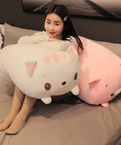 1. Almohada de peluche grande de gato, telas de peluche de buena calidad, súper suave, esponjoso, cómodo.