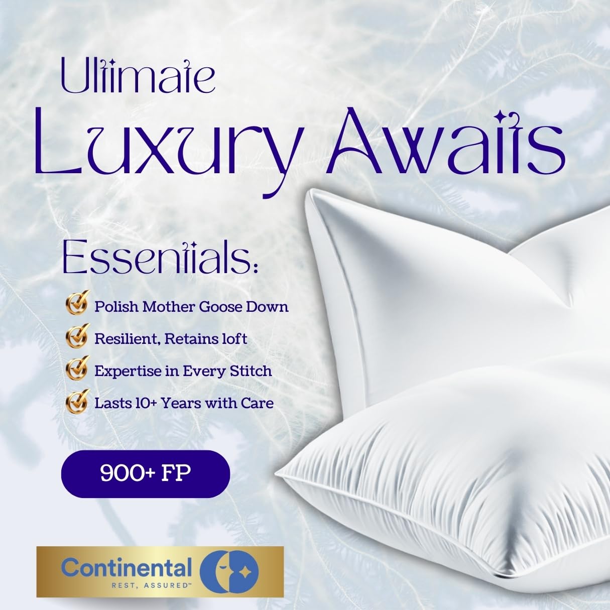 Almohada de plumón de lujo de Continental Bedding – Soporte
