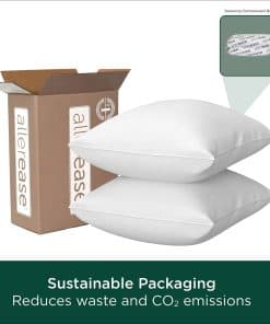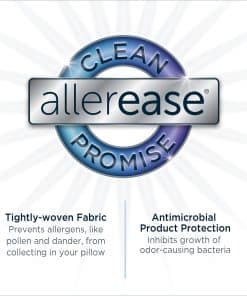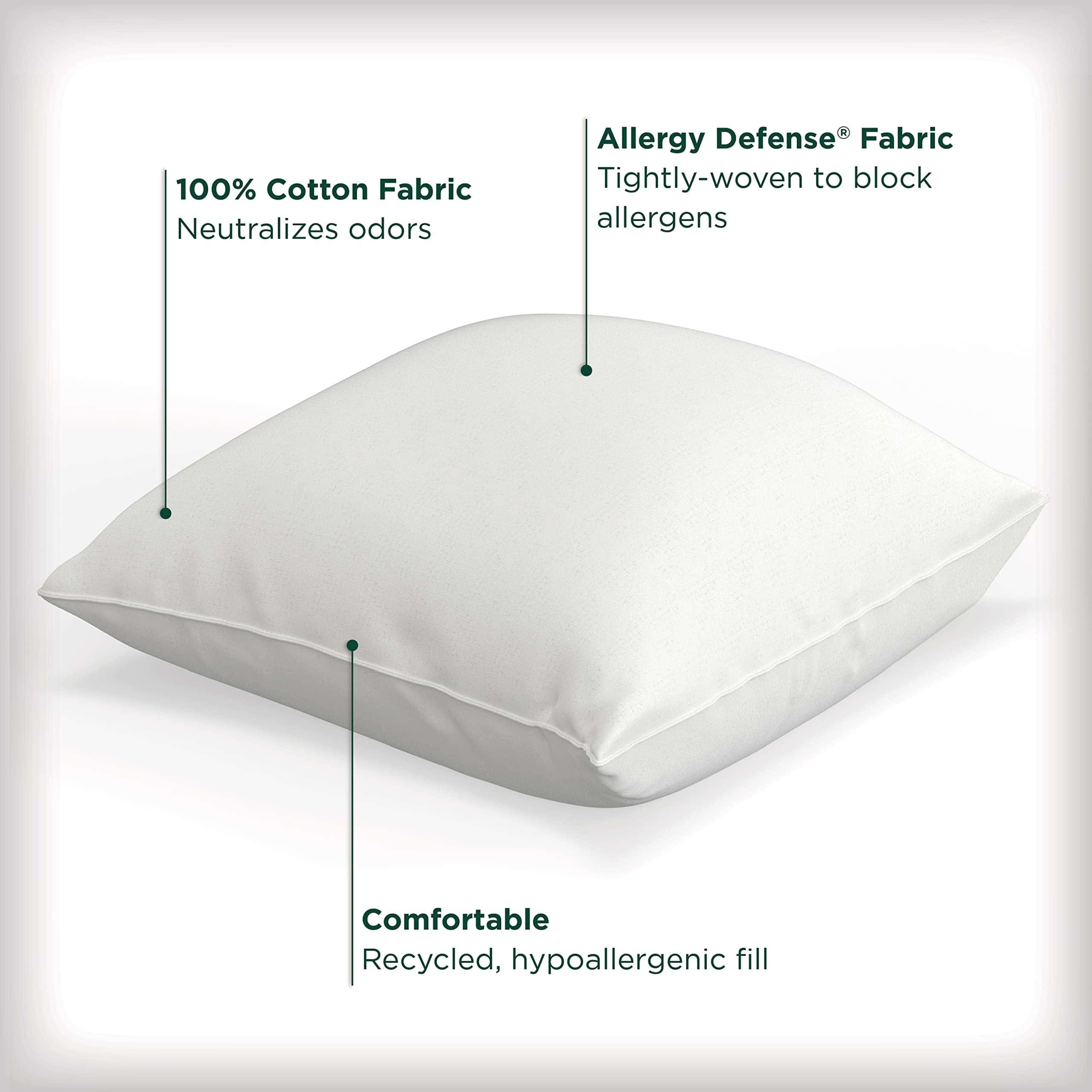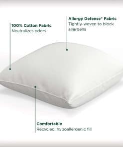 De la marca de ropa de cama para alergias más vendida AllerEase, la almohada Cotton Fresh Euro ofrece una experiencia de sueño limpia y cómoda. La tela de defensa contra alergias de AllerEase, diseñada expertamente, evita que los alérgenos no saludables del hogar pasen a través de la tela y se acumulen en tu almohada. Con tecnología HeiQ Fresh, Cotton Fresh neutraliza los olores e inhibe el crecimiento de partículas que causan mal olor, manteniendo tu almohada fresca entre lavados. El relleno de fibra ligero y receptivo es reciclado e hipoalergénico. Cotton Fresh es lavable en máquina para un cuidado fácil e incluye nuestra para que tengas la tranquilidad de haber tomado una elección limpia y saludable para ti y tu familia.