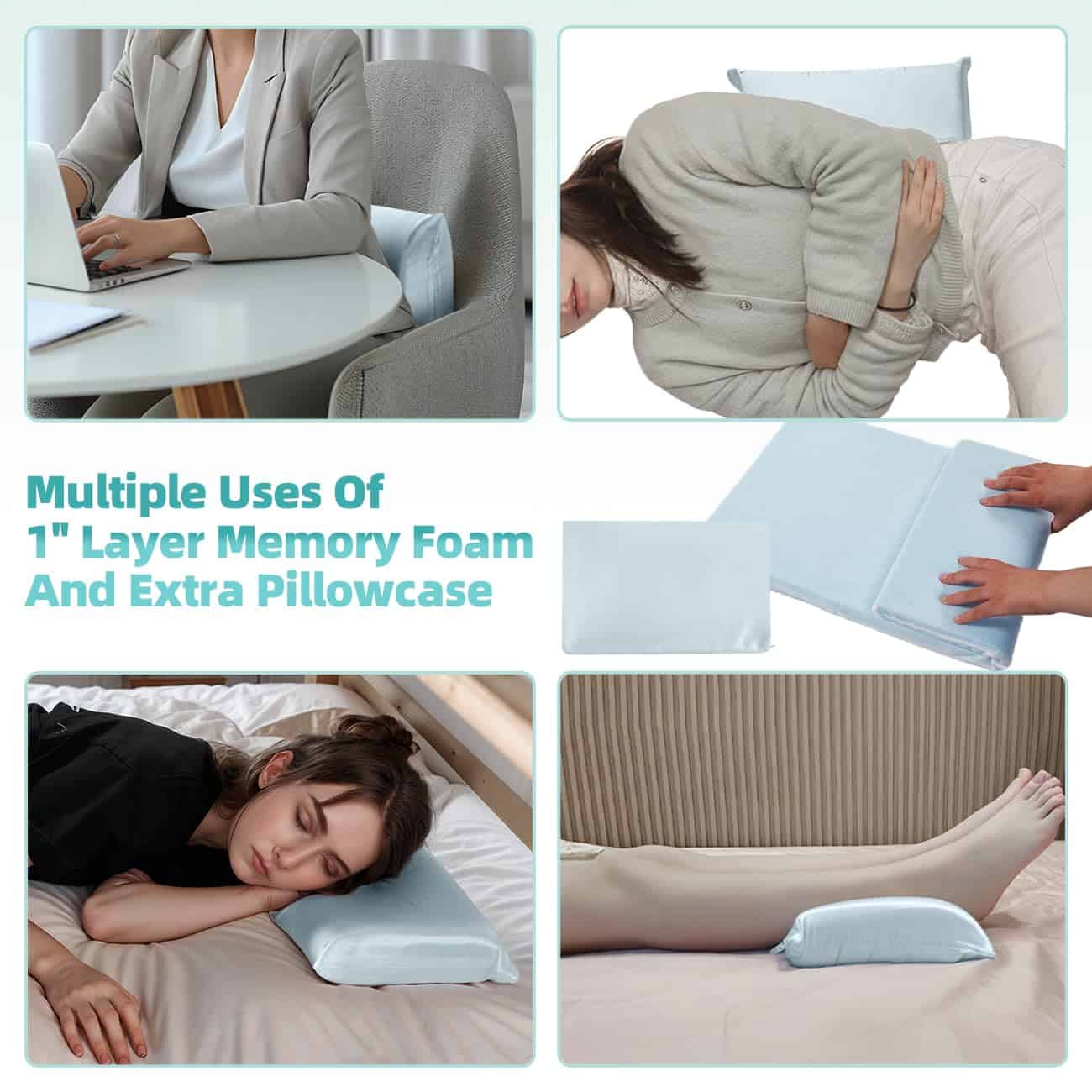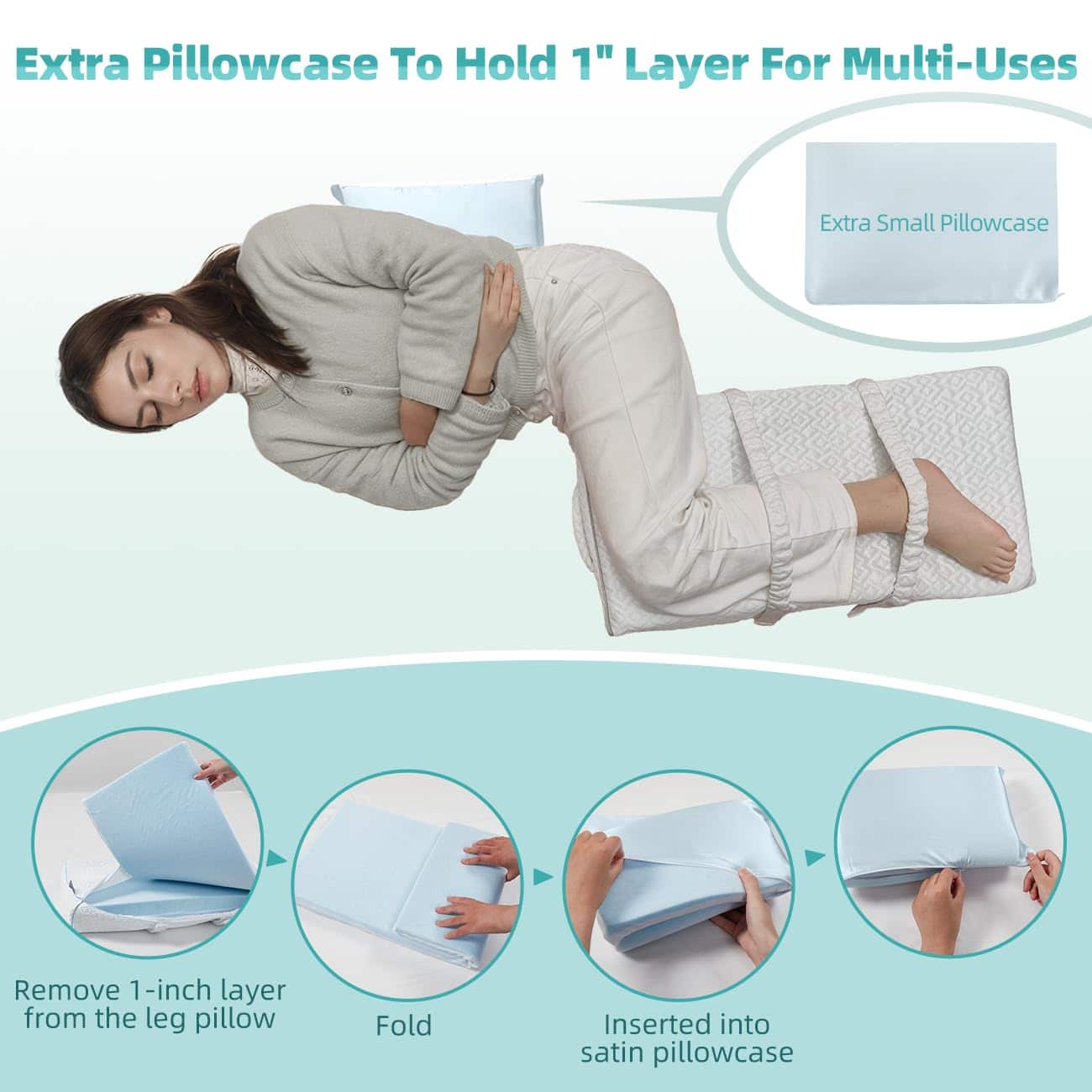 La almohada de rodilla LOFE ofrece una experiencia multiusos. La capa de espuma viscoelástica de 1 pulgada se puede insertar convenientemente en nuestra elaborada funda de almohada de satén, para que pueda proporcionar un soporte adicional cuando se coloca en la espalda, zona lumbar o cabeza. Ofrece comodidad y soporte exactamente donde más lo necesita, ya sea para aliviar la tensión en la parte baja de la espalda durante periodos prolongados sentado o proporcionar un suave cojín para su cabeza mientras descansa. La almohada de rodilla CertiPUR-US con espuma viscoelástica le brinda un soporte adecuado. Llena de espuma viscoelástica CertiPUR-US que posee la característica de rebote lento proporcionando un equilibrio perfecto entre suavidad y soporte. La almohada de pierna para personas que duermen de lado también puede mantener su soporte y forma después de un largo tiempo de uso. Además, la almohada de rodilla para personas que duermen de lado con dolor de cadera es lo suficientemente grande como para brindarle soporte desde los pies hasta el muslo. La almohada de rodilla para personas que duermen de lado ayuda a alinear su columna y aliviar el malestar. Colocar directamente la rodilla es una posición de dormir poco saludable, que puede causar inclinación pélvica y malestar. Al colocar nuestra almohada de rodilla para personas que duermen de lado entre las piernas mientras duerme de lado, puede separar las piernas. Al mismo tiempo, las alturas ajustables de la almohada de rodilla para personas que duermen de lado con dolor de cadera pueden ayudarlo a encontrar un mejor ángulo de soporte para las caderas y la pelvis, aliviando efectivamente el malestar en las piernas, rodillas y caderas. DOS CORREAS AJUSTABLES Y UN ASA MANTIENEN LA POSICIÓN DE LA ALMOHADA DE PIERNAS MEJOR: ¿Te preocupa que tu almohada de rodilla para personas que duermen de lado con dolor de cadera se deslice cuando te mueves por la noche? Para resolver este problema, diseñamos dos correas elásticas y equipadas con velcro para ayudarlo a asegurar la almohada de pierna para dormir de lado en la pierna, de modo que no se deslice la almohada de pierna cuando se mueva. Además, la adición reflexiva de un asa ubicada en la parte superior de la almohada facilita tanto la portabilidad como la facilidad de ajustar la posición de la almohada, lo que permite una reubicación o reorganización rápida según se desee. FUNDA DE ALMOHADA REMOVIBLE Y FRESCA PARA UNA EXPERIENCIA DE LIMPIEZA: Para brindar una experiencia fresca y limpia para su piel, nuestra almohada de rodilla para personas que duermen de lado con dolor de cadera está equipada con una funda de almohada fresca y removible, garantizando higiene y comodidad después de un tiempo de uso prolongado.