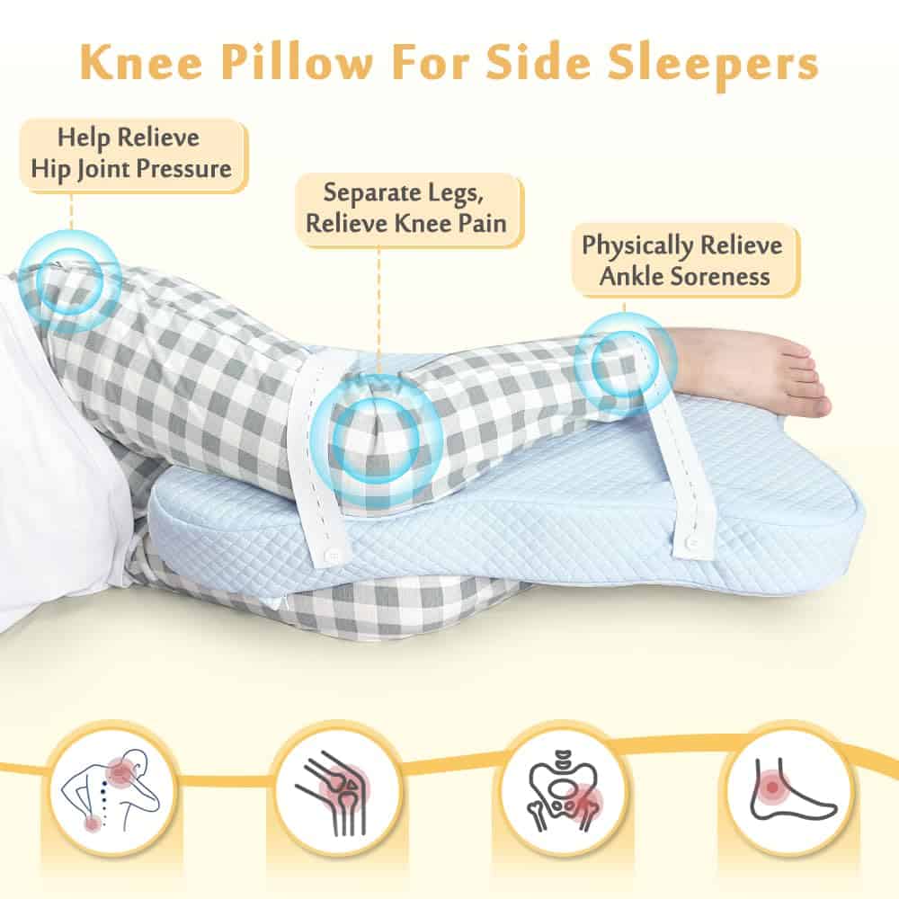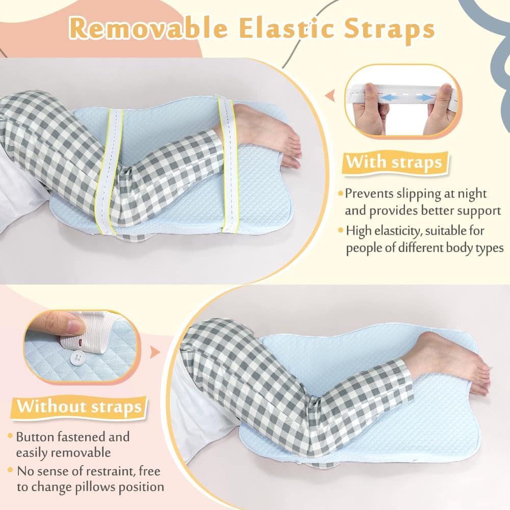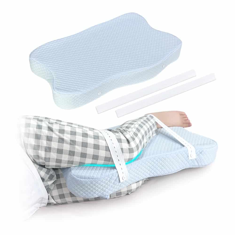Almohada de Rodilla Mybow para Dormir de Lado y de Espalda con Correa Almohada en Cuña de Espuma con Memoria para Soporte de Piernas y Cadera y Alineación de la Espalda
