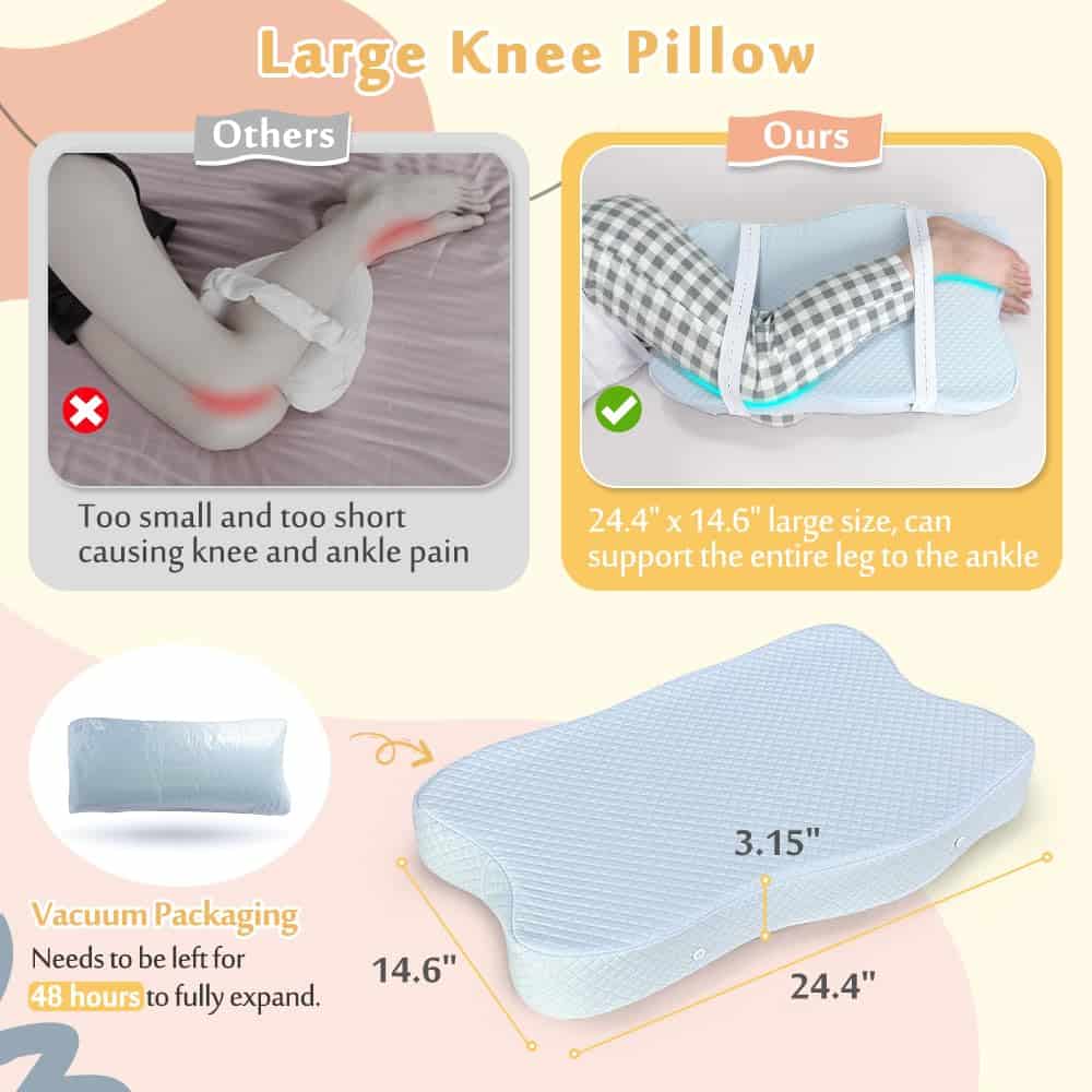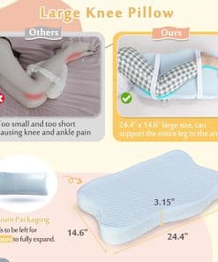 Con medidas de 24.4″ (L) x 14.6″ (W), esta almohada es más grande que las almohadas de rodilla estándar, ofreciendo un soporte y estabilidad superiores.