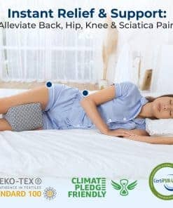 Este cojín ergonómico para piernas garantiza un sueño cómodo al separar las rodillas, alinear la columna vertebral, reducir la presión y mantenerse en su lugar toda la noche. Tamaño de 9.8″L x 7.8″W x 6.2″H para un soporte personalizado. La espuma viscoelástica premium se adapta a las rodillas, piernas y muslos. Viene con una cubierta suave, transpirable y anti-pelusa, fácilmente lavable para la higiene. Use la almohada contorneada entre las rodillas, debajo de la pierna inferior o superior, entre las pantorrillas o debajo de las rodillas para las personas que duermen boca arriba. Nuestra almohada ortopédica está diseñada para proporcionar un soporte personalizado y confort universal para las personas que duermen de lado y boca arriba, mujeres embarazadas, personas mayores y aquellos que experimentan dolor post-operatorio o por lesiones. La almohada para dormir de 5 Stars United está certificada por OEKO-TEX STANDARD 100 y CertiPUR, garantizando una elección segura y sostenible para ti. Aprobado por HSA y FSA. Ofrece el regalo de confort y salud con esta almohada de descanso para rodillas, perfecta para personas que duermen de lado y boca arriba, recuperación post-cirugía de rodilla y madres embarazadas.