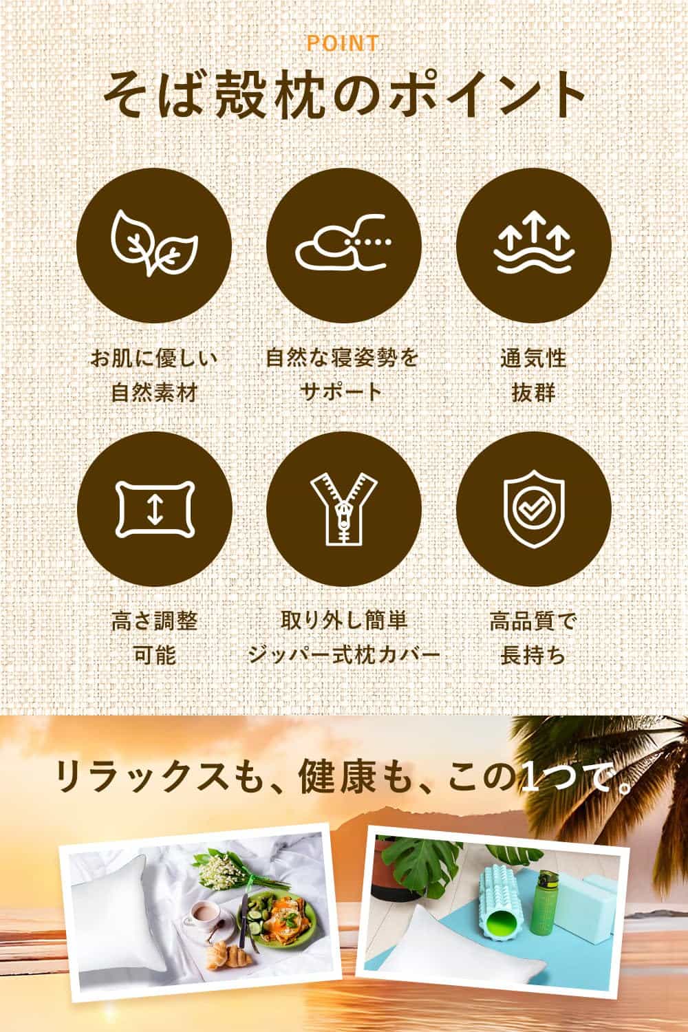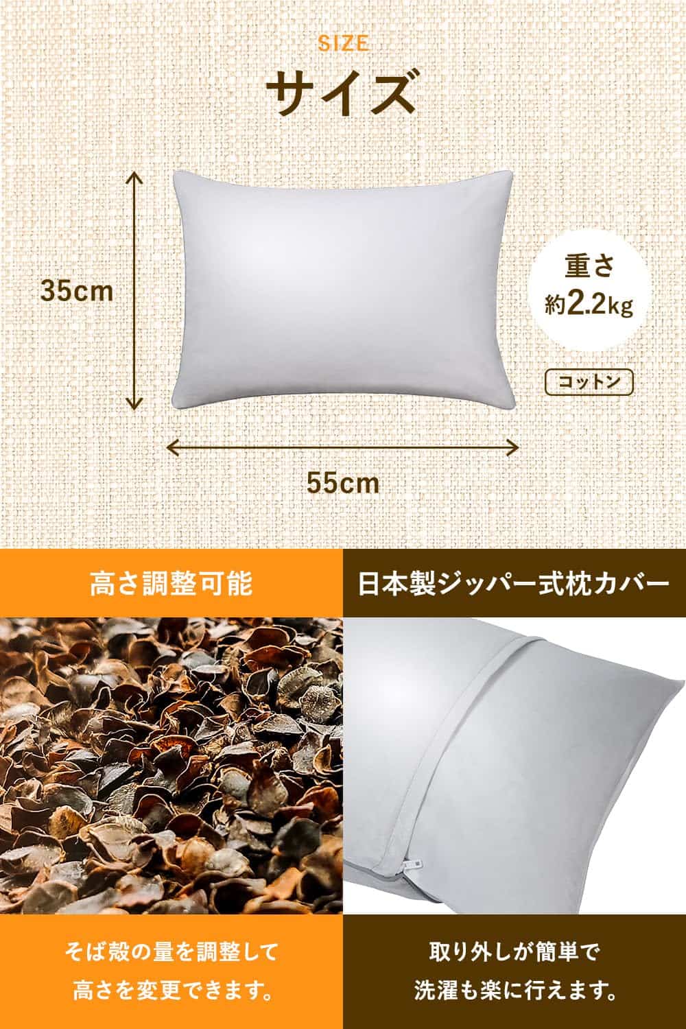 1. Las propiedades únicas de los talos de trigo sarraceno se adaptan a la forma de tu cabeza y cuello, ofreciendo un soporte superior y alineación para reducir el dolor y lograr una mejor postura durante el sueño.