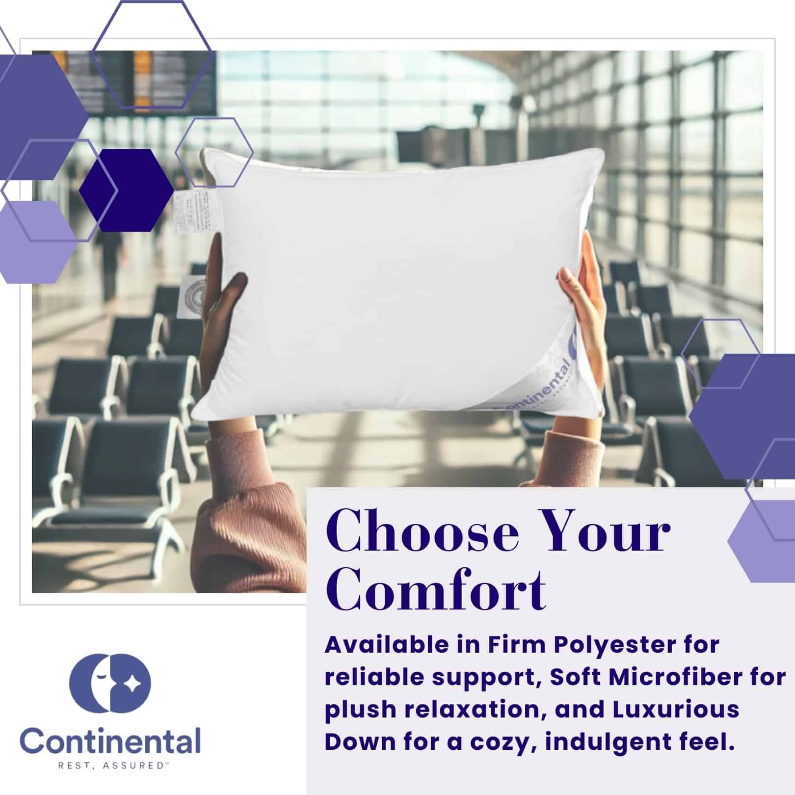 Disfrute de un sueño reparador en movimiento con la Almohada de Viaje Continental Bedding, disponible en tres excepcionales opciones de relleno para adaptarse a su estilo de vida.