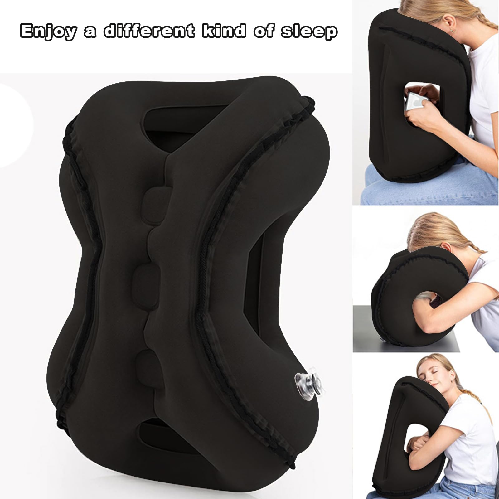 5. Confort Personalizable para Cada Viajero Ya sea que necesites un soporte firme o prefieras una almohada más suave, puedes ajustar fácilmente la presión de aire a tu preferencia. El diseño ergonómico de las almohadas de viaje se adapta a varias formas de cara y posiciones para dormir, asegurando que te mantengas cómodo sin importar dónde estés. Perfecto para cualquiera que busque un soporte de cuello de alta calidad, la almohada de cuello inflable es un accesorio de viaje imprescindible para los viajeros frecuentes y guerreros de la carretera.