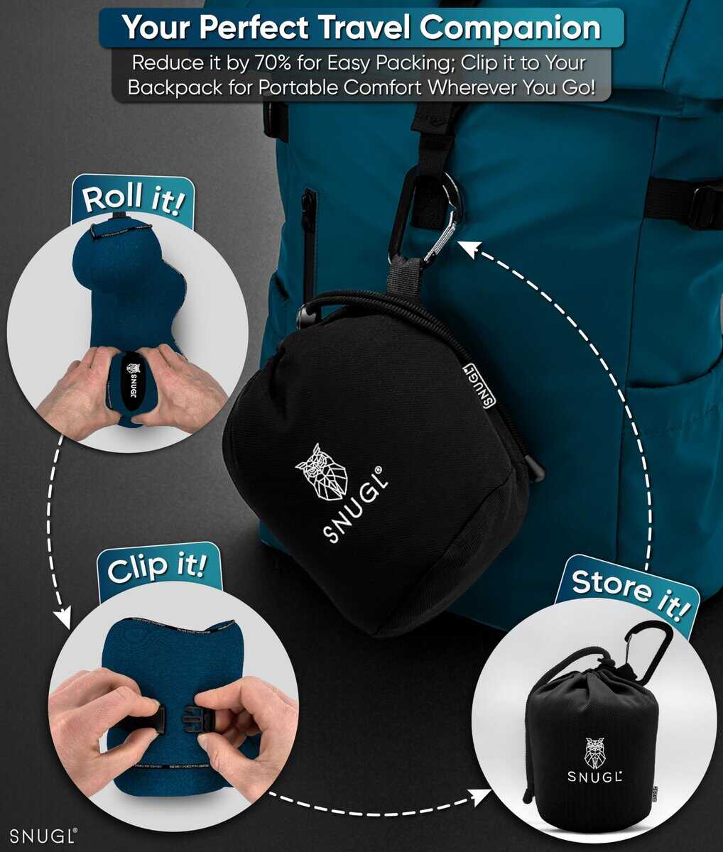 ¡La almohada de viaje para cuello SNUGL es la solución perfecta para tus problemas de sueño en los vuelos! Cansado de levantarte con dolor de cuello y espalda después de un largo vuelo en avión? ¡Con nuestra almohada de cuello de espuma viscoelástica, esos días han terminado! Diseñada científicamente para brindar el soporte adecuado para tu cuello, nuestra almohada de viaje para cuello es la elección inteligente para una comodidad incomparable mientras viajas. La forma ergonómica única de nuestra almohada de cuello para aviones se ajusta a la perfección a los contornos de tu cuello y hombros, ayudándote a mantener una alineación natural mientras duermes. Nuestro cojín de cuello de espuma viscoelástica es suave, pero de apoyo, brindándote comodidad para un sueño ininterrumpido durante tus vuelos. Las correas de hebilla ajustables dobles te permiten encontrar el ajuste ideal para tu cuello, evitando dolores y molestias. La almohada de cuello SNUGL es ligera y portátil, ideal para llevar en tus viajes. Puedes enrollarla para reducir su tamaño y guardarla en la bolsa de transporte incluida, que puedes llevar fácilmente dentro de tu equipaje o adjuntar al exterior con el mosquetón incluido. La tela transpirable y lavable de nuestra almohada de cuello para aviones te mantendrá fresco y cómodo durante todo el vuelo, evitando el sobrecalentamiento y el sudor excesivo. ¡Prepárate para disfrutar de un sueño reparador en tus próximos viajes con la almohada de cuello para aviones SNUGL! Además, con nuestra increíble política de devolución de 60 días, excelente servicio al cliente y garantía de 24 meses, ¡puedes comprar con total confianza! ¡Hazte con nuestra almohada de viaje para cuello SNUGL y descubre la comodidad y el apoyo que te has estado perdiendo en todos tus vuelos! ¡Una excelente idea de regalo para los viajeros de tu vida!