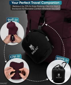 1. LA ELECCIÓN INTELIGENTE PARA LA COMODIDAD – ¿Cuándo fue la última vez que disfrutó de un sueño cómodo en un vuelo ¿Siempre ha tenido dificultades para dormir en los aviones? ¿No pudo encontrar una almohada de cuello de avión que funcionara para usted? ¡Eso está a punto de cambiar con la almohada de cuello de espuma con memoria SNUGL! Nuestra almohada de apoyo para el cuello está diseñada científicamente para moldearse a su forma, disminuyendo la posibilidad de despertarse con dolores y molestias, que es común con otras almohadas de viaje para aviones.