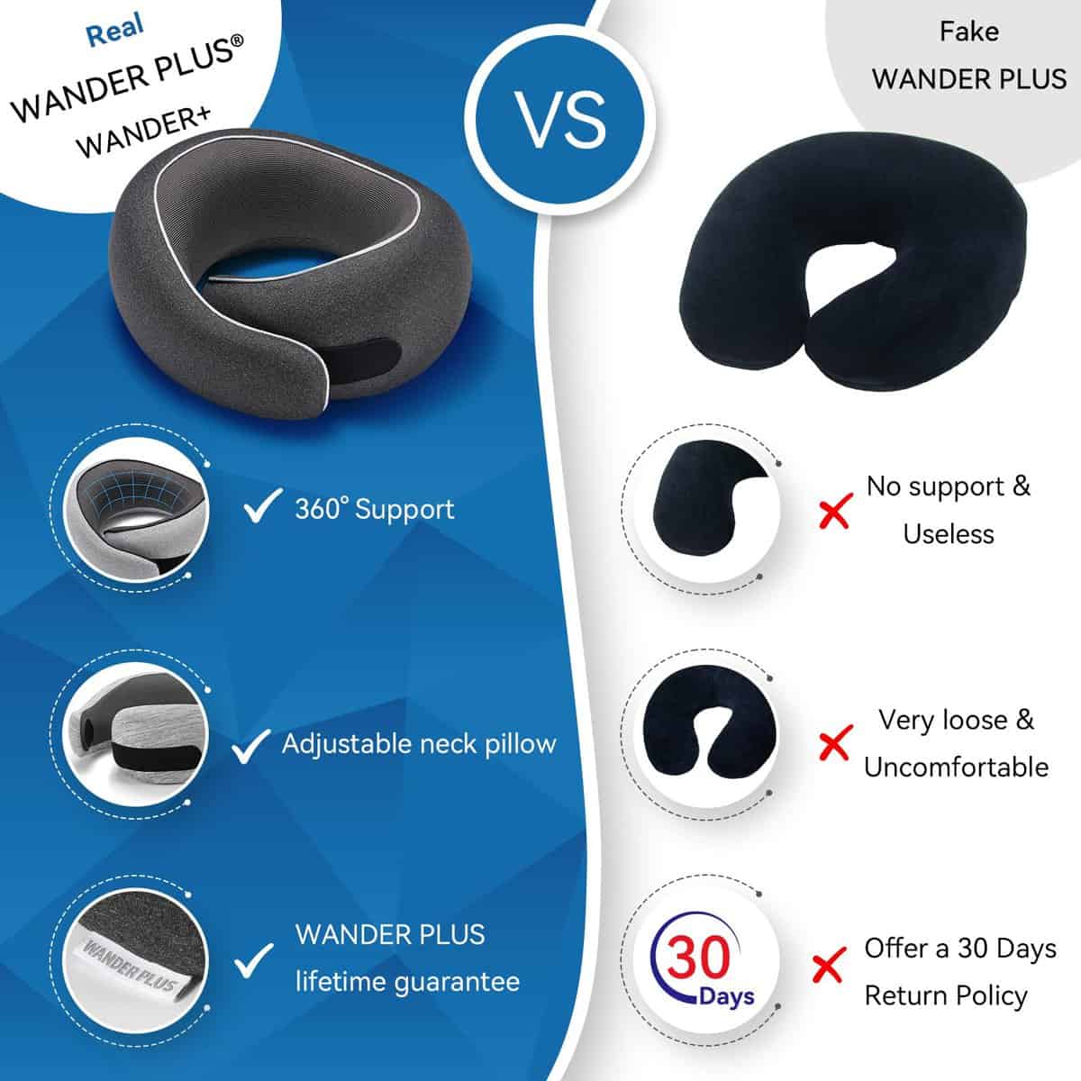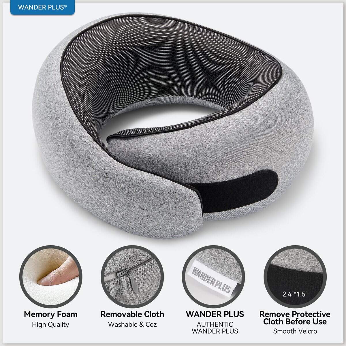 5. Elegante y Funcional Elegante, moderna y ligera, la almohada de viaje WANDER PLUS combina perfectamente estilo y funcionalidad. Su material transpirable y suave proporciona confort incluso en viajes largos, mientras que su diseño ergonómico previene la rigidez del cuello. Este accesorio imprescindible asegura que viajes con comodidad y estilo donde quiera que vayas.