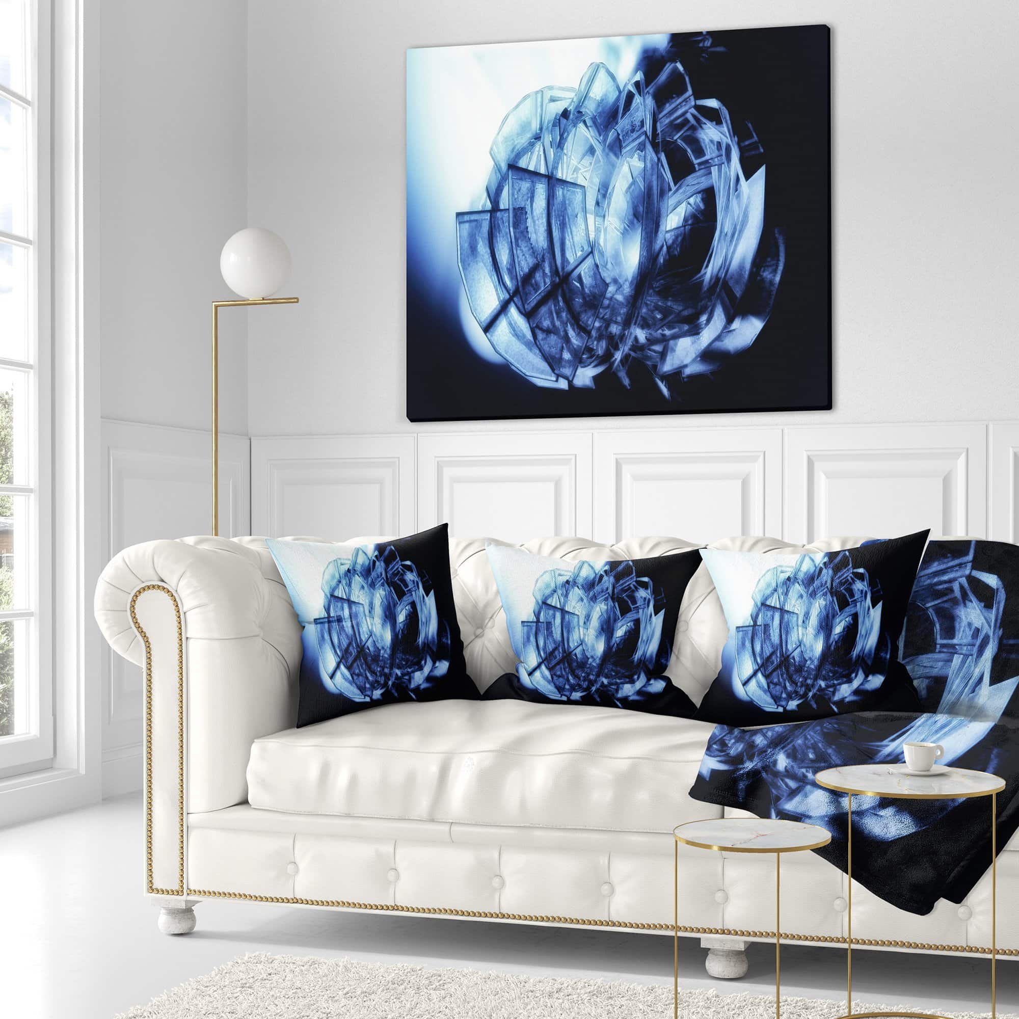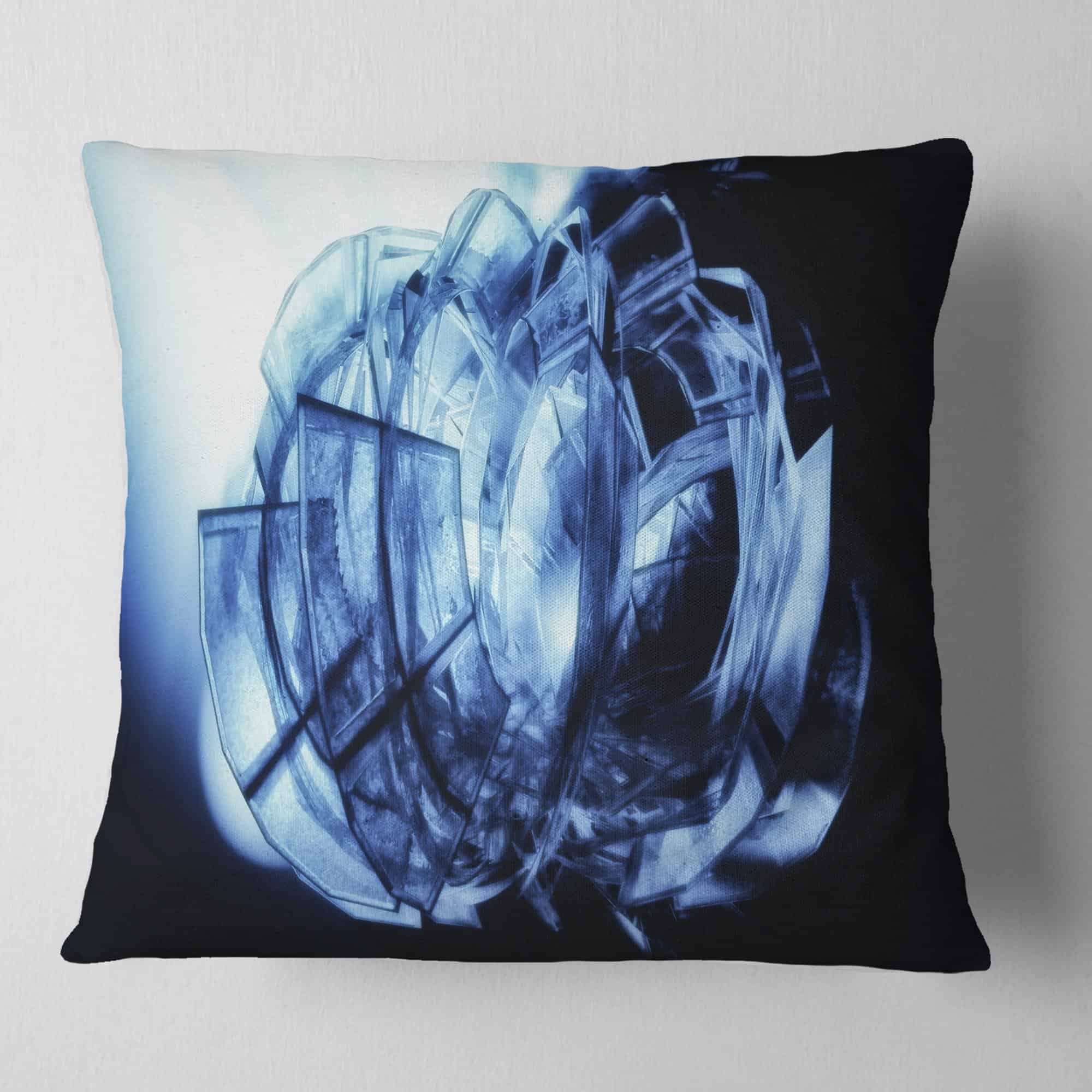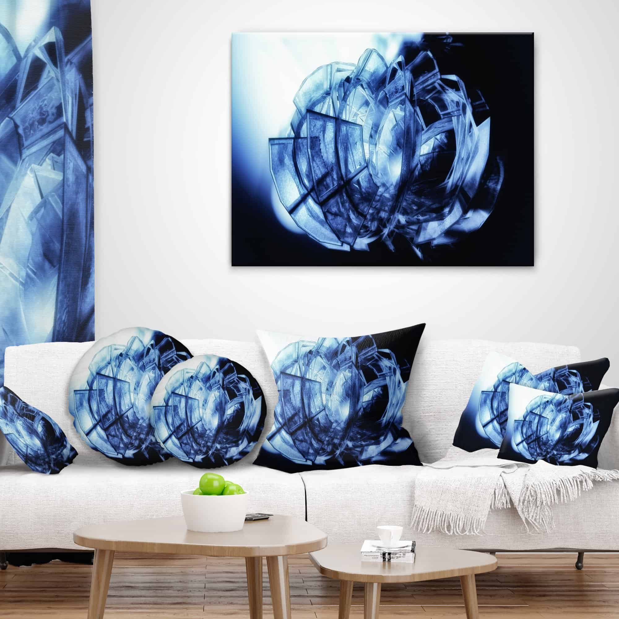 Almohada decorativa de patrón de vidrio azul fractal 3D
