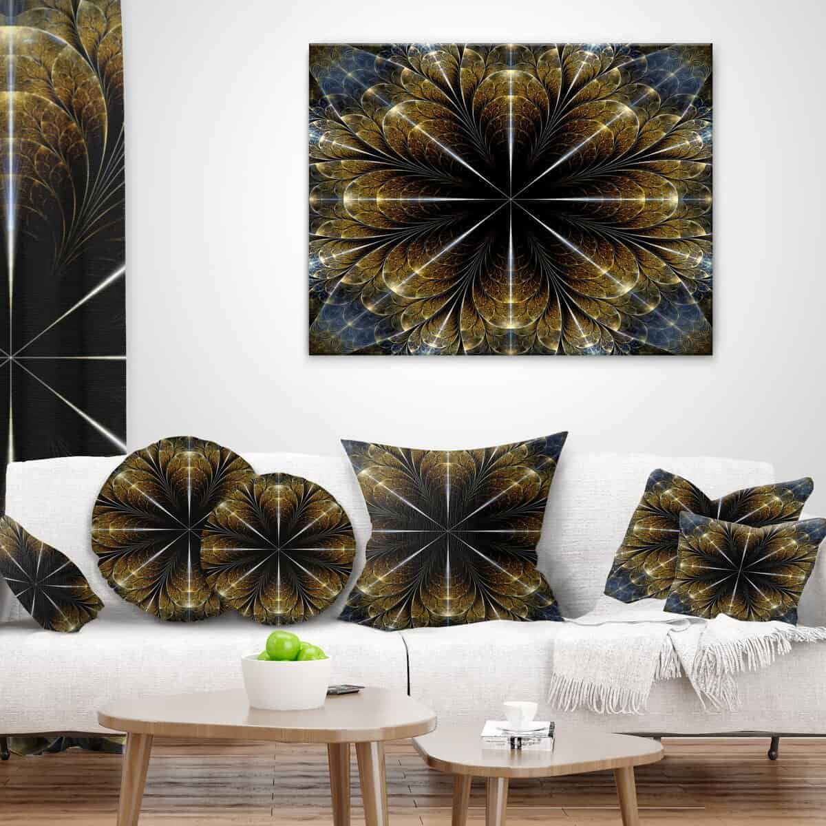 Almohada Decorativa ‘Flor Fractal Dorada’ Abstracta para