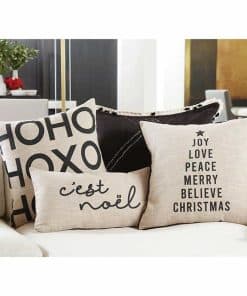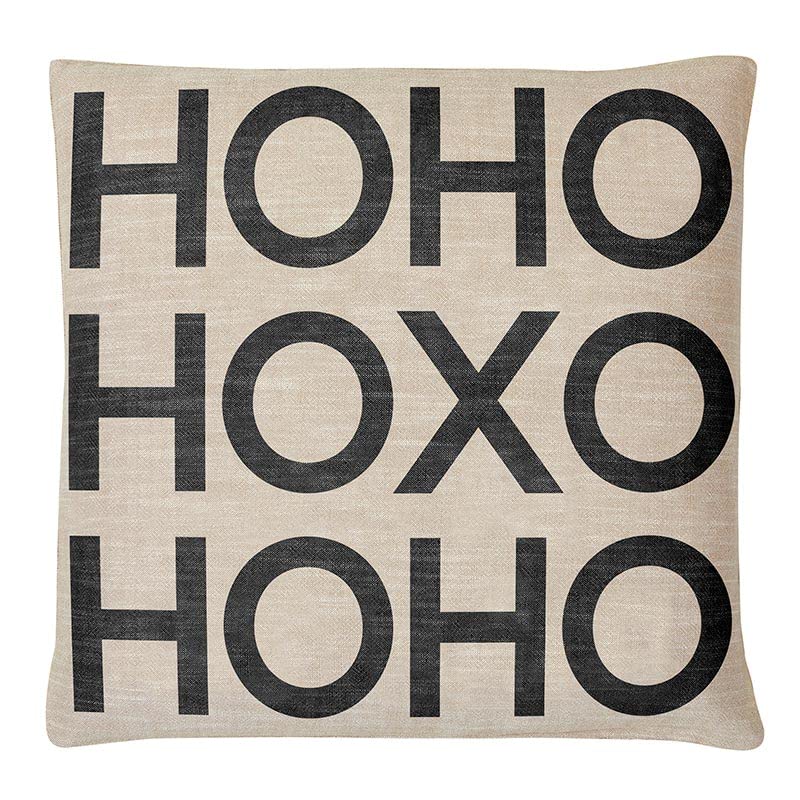 1. ALMOHADA LUMBAR DE VACACIONES NEGRA Y BEIGE: Funda de mezcla de algodón/poliéster; lee «HO HO HO XO HO HO».