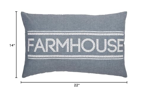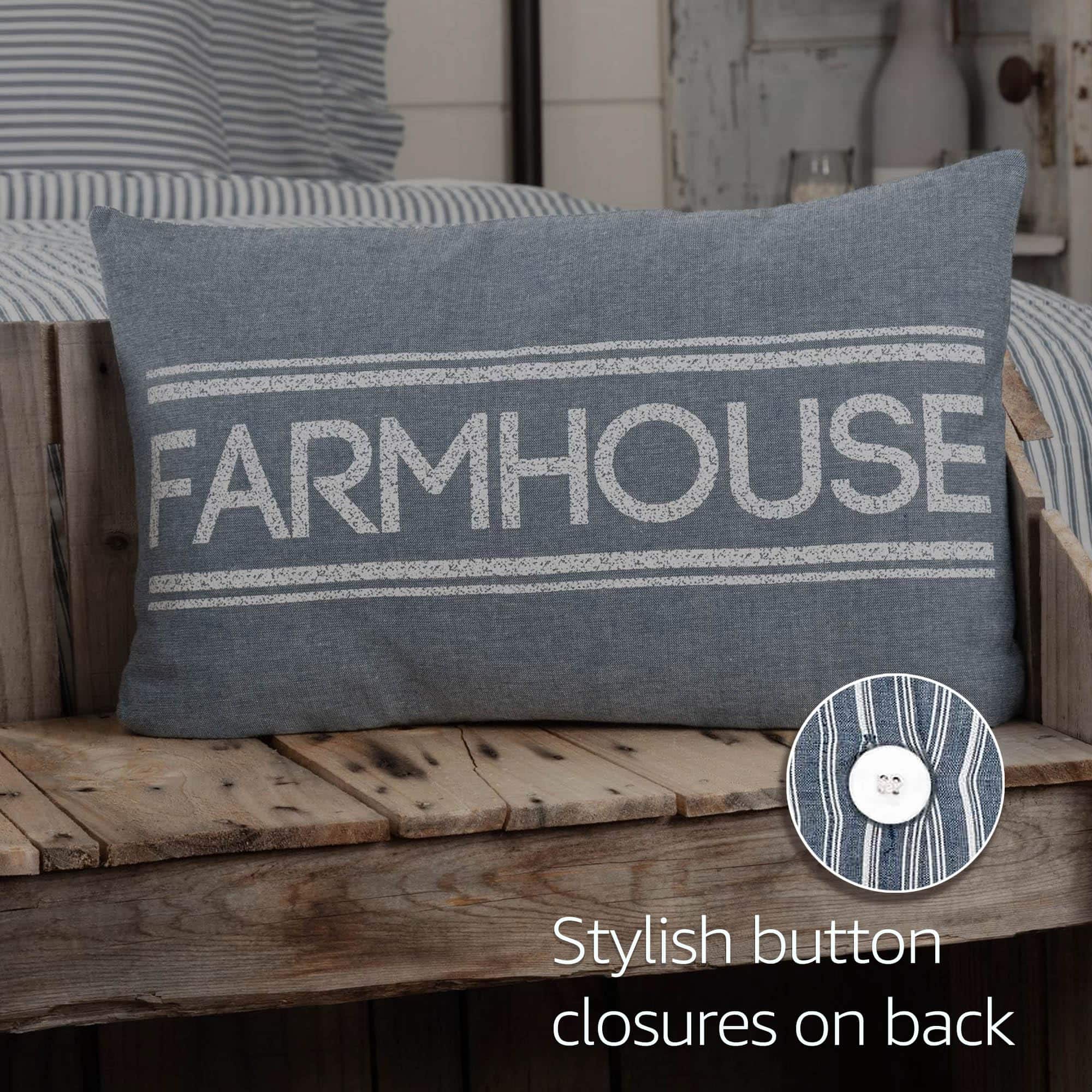 Incluye una almohada decorativa de algodón 100 por ciento de 14×22 pulgadas con relleno de poliéster. Reverso a rayas azules y blancas con cierres estilo botón para quitar fácilmente la cubierta de algodón para un cuidado fácil. Estilo versátil que seguro combinará con decoración de campo chic, rústica o de cabaña. Lavar la cubierta y el relleno por separado. Retire la cubierta de la almohada usando los cierres en la espalda. Lavar a máquina en ciclo suave y secar en bajo. Seguro para planchar. Características estampado en stencil con la palabra ‘farmhouse’ en una base azul denim neutral con estampado de rayas estilo saco gruesas horizontalmente arriba y abajo.
