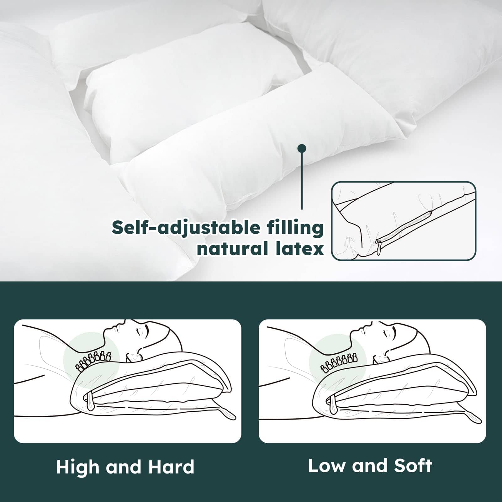 2. Soporte Mejorado para el Cuello y la Espalda: En la Zona C, nuestra almohada incorpora partículas de látex natural de alta calidad, ofreciendo un soporte incomparable para el cuello. Este diseño cuidadoso ayuda a corregir la alineación espinal y aliviar el dolor de cuello, siendo una opción perfecta para aquellos que buscan beneficios terapéuticos en una almohada.