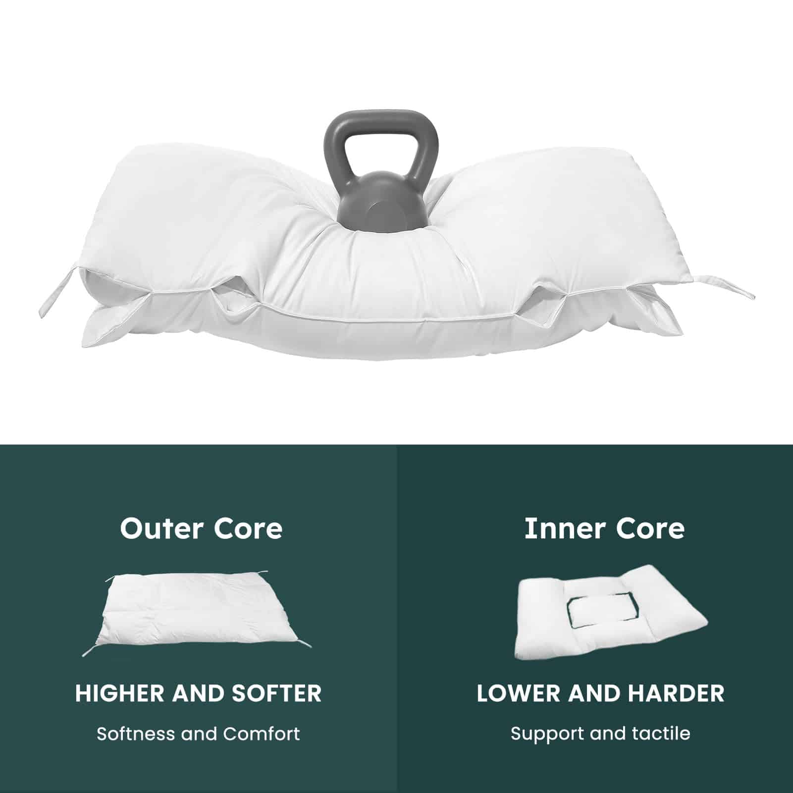 4. Materiales de Calidad Premium: Cada almohada SerenLuna está rellena con el mejor plumón de ganso blanco y látex natural puro, garantizando durabilidad y comodidad. Esta combinación de materiales de alta calidad establece un nuevo estándar en lujo y eficacia de las almohadas.
