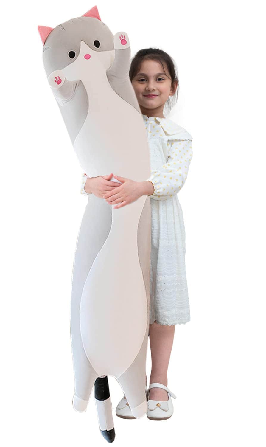 Almohada gigante de gato de peluche, lindo gatito durmiente abrazando almohada, suave muñeco de cuerpo largo de gatito cojín de gato juguete para niños novia (Gris, 110cm/43.3inch). Con su encantador y muy realista aspecto, el juguete puede acompañarte a ti o a tus amigos en momentos de soledad. Todos los malos estados de ánimo y el estrés laboral desaparecerán cuando abraces la Almohada de Gato de Peluche. Nuestra Almohada de Gato Cariñoso está hecha de tela elástica de alta calidad y rellena de suave algodón de PP, te sentirás muy cómodo al abrazarlo. Proceso de costura meticuloso y artesanía delicada, este juguete con forma de almohada de gato garantiza una gran durabilidad. La Almohada de Gato Cachorro también es un gran regalo para tus adorables novias o tus lindos niños en su cumpleaños u otras festividades. Perfecto para aplicaciones de decoración de sillas, sofás, coches, asientos de cubiertas de cojines. Añade diversión y comodidad a tu vida.