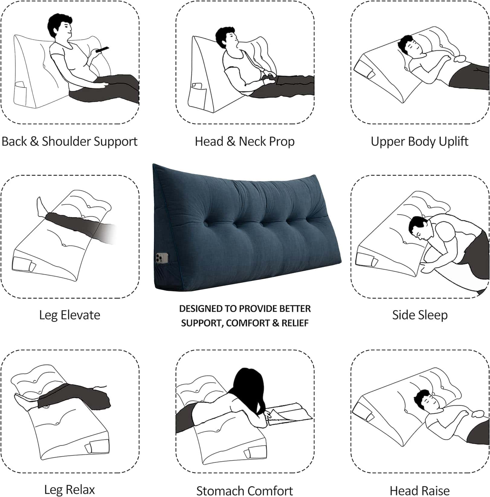 Esta almohada para cabecera de lectura ofrece excelente comodidad gracias a su diseño triangular. El cojín de apoyo para la cama se ajusta bien a la espalda y la cintura, minimizando la presión lumbar/espinal. Esta almohada de cuña puede ayudarte a mantener la sensación de estar libre de tensión en la cama o sofá, ideal para trabajadores nocturnos, ratones de biblioteca y amantes de la comodidad por igual. Además de su función de relleno de hueco, nuestra almohada cuenta con dos bolsillos de gran capacidad en ambos lados. Puedes guardar convenientemente artículos como teléfonos, controles remotos, gafas y más, manteniendo tu espacio de descanso ordenado y organizado. Nuestra almohada viene con una cubierta extraíble y lavable a máquina para una limpieza conveniente y mantenimiento higiénico. La almohada para cabecera está disponible en 4 tamaños: Pequeño-19.7″ 7.8″ 23.6″ | Géminis-39″ 9″ 23.6″ | Queen-59″ 9″ 23.6″ | Rey-76″ 9″ 23.6″. Este cojín para cabecera grande es adecuado para camas de día, camas gemelas, camas queen y camas king. Otros cojines pequeños para cabecera pueden ser utilizados como almohada para la cama en habitaciones de niños o dormitorios, almohada de apoyo lumbar para el sofá cama, contra una pared cerca de la ventana o para leer y relajarse. La almohada para cabecera de cuña está hecha de chenilla de alta calidad 3D, la textura mullida de esta chenilla crea una sensación rica y lujosa. La almohada para cabecera de cuña está rellena de fibras de poliéster de alta densidad 15D51, y su excelente elasticidad puede brindarte comodidad duradera cuando te apoyas en la cabecera. Muchas personas, especialmente los estudiantes universitarios, encuentran que la almohada para cabecera es perfecta como cabecera, tanto decorativa como funcional. Esta innovadora cabecera de dormitorio tamaño gemelo es la elección ideal para cualquiera que busque una pieza cómoda y funcional que añada estilo y comodidad a su habitación de dormitorio, es la adición perfecta a cualquier dormitorio universitario, y es un excelente regalo para los nuevos estudiantes. Haz la vida universitaria más fácil y cómoda. Debido al gran volumen de la almohada para cabecera, el costo de transporte es demasiado alto. Con el fin de ofrecerte un precio más favorable, utilizamos compresión al vacío. Cuando se abra el paquete, la almohada para cabecera quedará deformada y delgada debido al embalaje por compresión. Por favor, espera 72 horas, la almohada para cama se restaurará a su grosor y forma original. Si deseas recuperar el grosor (altura) rápidamente, por favor sacude y golpea la almohada, o exponla al sol.