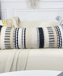 Almohada Larga de Chenille y Algodón para Cama, Funda de Almohada Lumbar Rayada Texturizada Boho 16×36, Decoración de Acento Neutro Funda de Almohada Extra Larga para Sofá, Sala, Dormitorio, Gris. Esta almohada larga de chenille y algodón para cama es la combinación perfecta de comodidad y estilo. Con una superficie de chenille y algodón de calidad y una parte trasera de lino grueso de color blanco crema, esta almohada es suave, acogedora y esponjosa. El diseño único de rayas de chenille coloridas del arcoíris combinadas con patrones geométricos en 3D le brinda un aspecto lujoso y elegante. La cremallera invisible permite un fácil acceso a la almohada y las costuras rectas garantizan durabilidad. Perfecta para dar un toque de color en cualquier habitación, esta funda de almohada lumbar larga es ideal para decorar tu sofá, sala o dormitorio. Disfruta de la comodidad y el estilo con esta almohada larga de chenille y algodón para cama en gris.