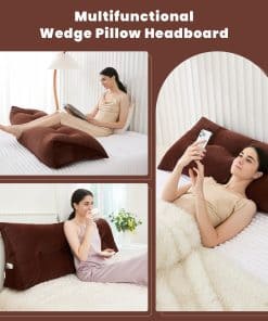 2. Diseño ergonómico de almohada para cabecera de cuña: La almohada de cuña de tamaño queen es de 59x8x20 pulgadas. El diseño de almohada de cuña triangular está diseñado ergonómicamente para adaptarse a los contornos de tu cuerpo y proporcionar un soporte suave para tus hombros, espalda y región lumbar para ayudarte a sentir más cómodo mientras descansas o duermes.