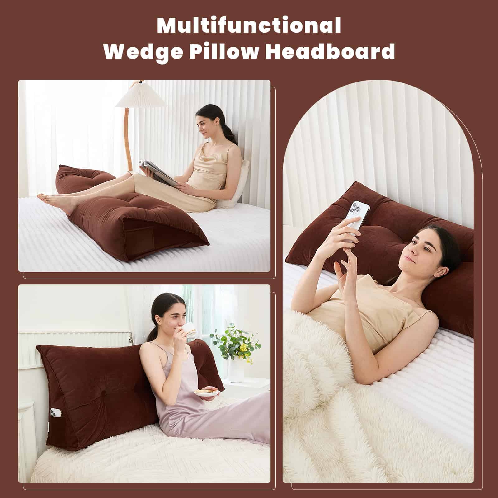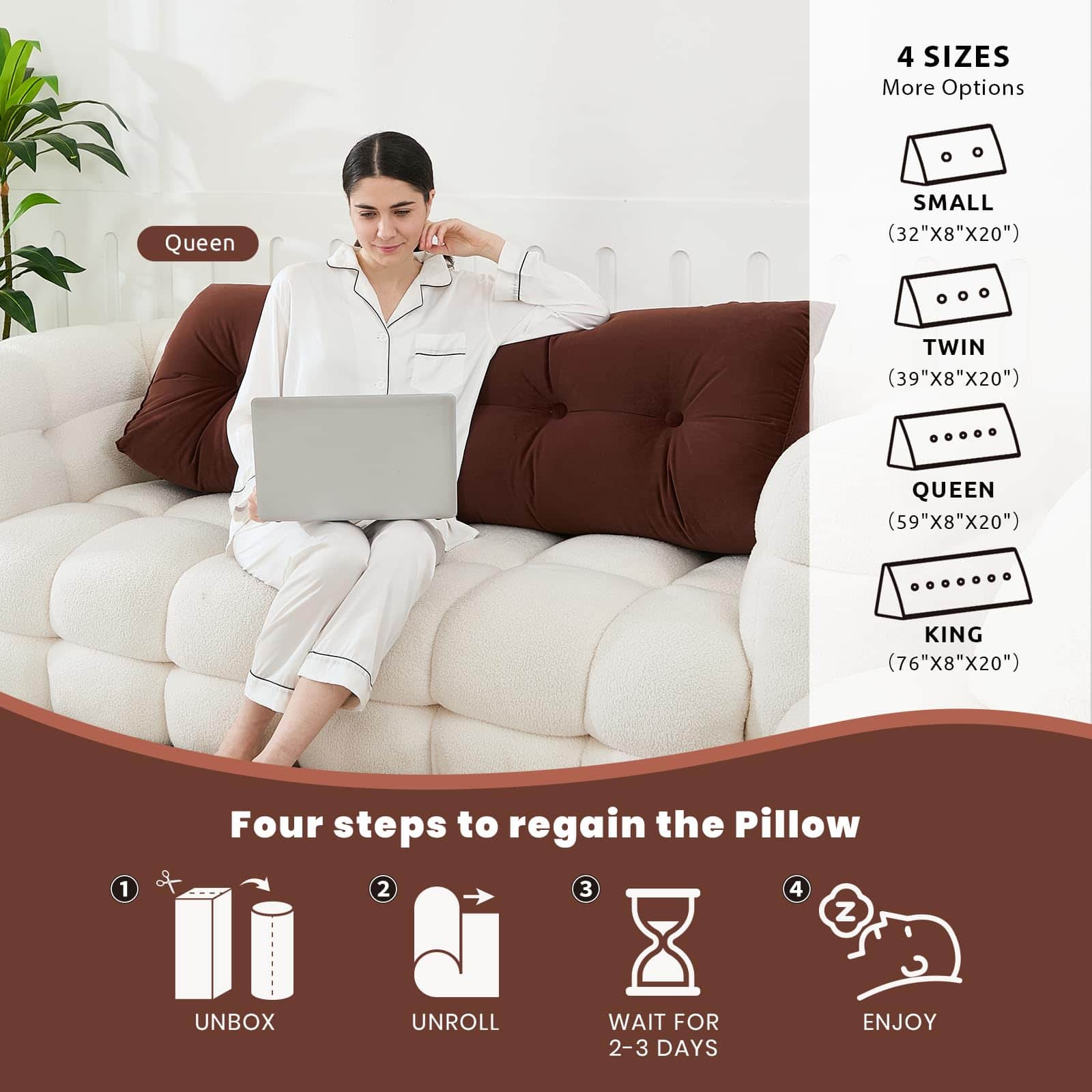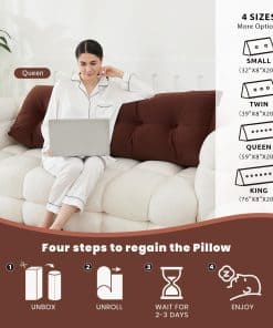 5. Multiuso: La almohada para cabecera de cama no solo se puede usar como almohada, sino también como una cabecera para decorar la habitación, siendo decorativa y práctica. Es muy portátil y adecuada para diversas ocasiones, como cabecera en la cama y en autocaravana, cojín para golpes, cojín en tu sofá y ventana flotante, o almohada cómoda para dormir