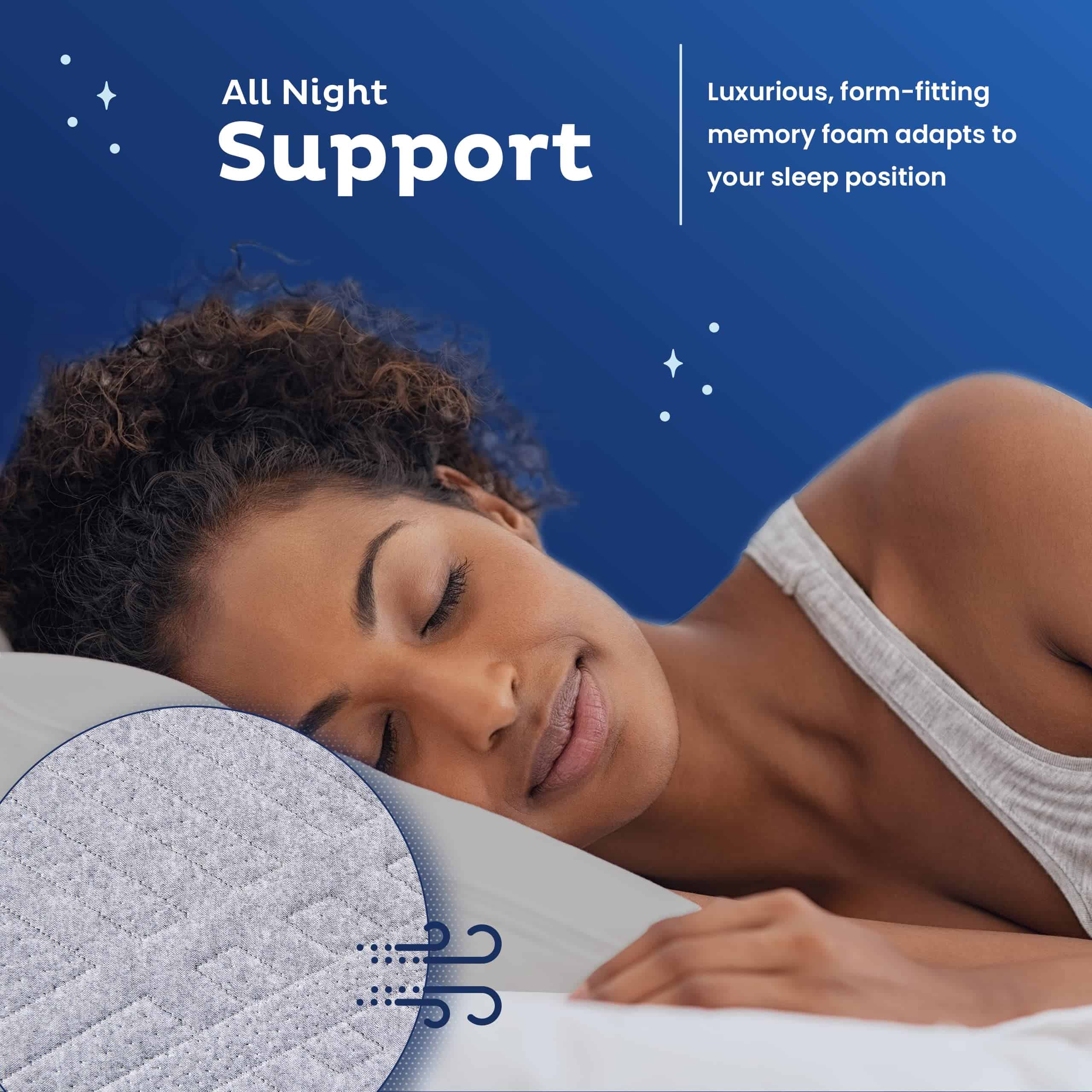 4. TECNOLOGÍA KOOL-FLOW – ¡Esta almohada de cuerpo refrigerante no es solo charla! El tejido de su lujosa funda extra transpirable lo mantendrá fresco incluso en las noches más calurosas.