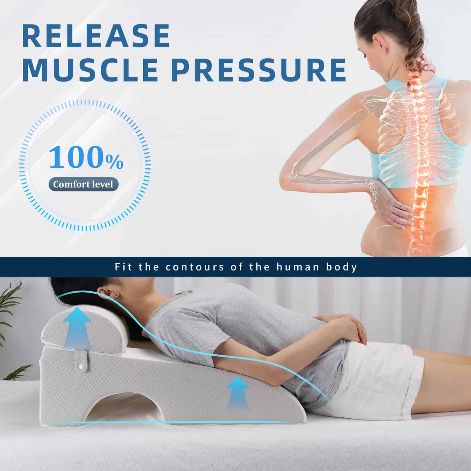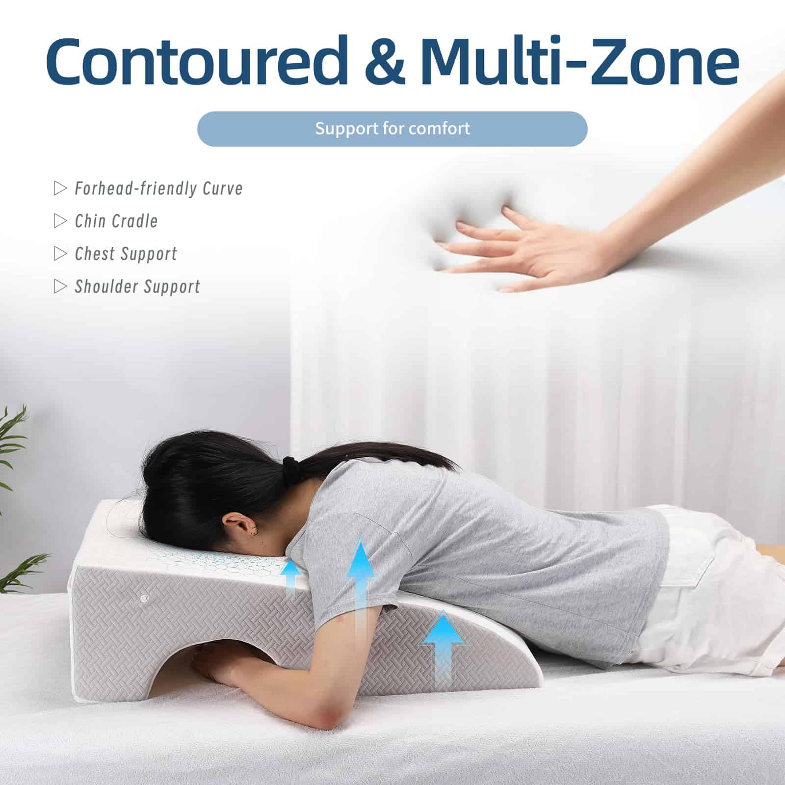 5. ALMOHADA DE MASAJE PARA EL ROSTRO: La almohada boca abajo para dormir no solo es adecuada para la recuperación de la cirugía ocular, sino que también puede utilizarse como almohada de masaje en casa. Puedes recostarte en la almohada para relajar los músculos de la espalda y aliviar tu fatiga y dolores, o puedes usar la almohada semi-circular pequeña para estirar los músculos del hombro y el cuello y abrir tus pulmones