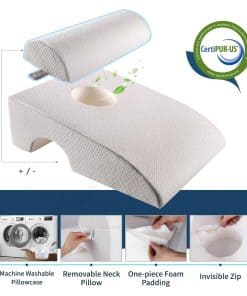 2. RESPIRACIÓN CÓMODA: Cuando mantienes tu rostro hacia abajo para usar la almohada, la suave funda y el relleno de espuma te proporcionan una sensación cómoda en la piel, tu rostro encaja adecuadamente en el agujero que mide 5.7 pulgadas de largo por 6.5 pulgadas de ancho, con espacio en la parte inferior para permitir que el aire circule y asegurar que respires suavemente.