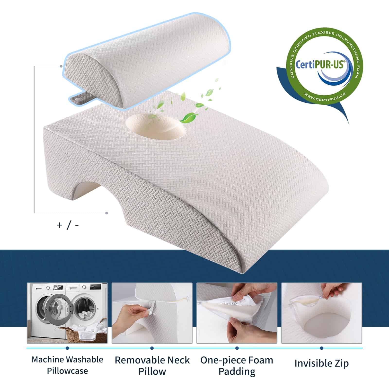 3. DISEÑO ÚNICO: Un set que contiene una almohada boca abajo y una almohada media luna, que se pueden separar para su uso. La almohada media luna puede usarse como almohada para la cabeza y las piernas, y la almohada boca abajo se puede usar para dormir. También puedes combinarlas y usarlas verticalmente contra tu espalda, te proporcionará un soporte estable.