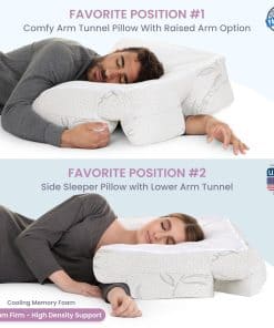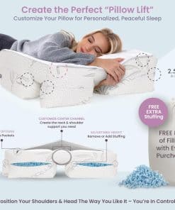 La almohada para esposa es la solución perfecta para aquellos que sufren de dolores de cuello o hombros. Con su diseño ajustable y material de Memory Foam enfriado con gel, esta almohada ofrece un soporte personalizado para una posición óptima de descanso. No más noches inquietas ni dolores por la mañana, esta almohada te permitirá disfrutar de un sueño profundo y reparador. Su diseño contorneado con ranuras para los brazos y el cuerpo permite un posicionamiento cómodo que alivia la presión y promueve una postura adecuada mientras duermes. Además, la cubierta de rayón y la almohada refrigerante mantienen la temperatura de la almohada agradable y fresca durante toda la noche. Con una promesa de devolución de dinero de 101 días, puedes probar la almohada para esposa sin ningún riesgo. ¡Hazte con la tuya hoy y mejora la calidad de tu sueño!