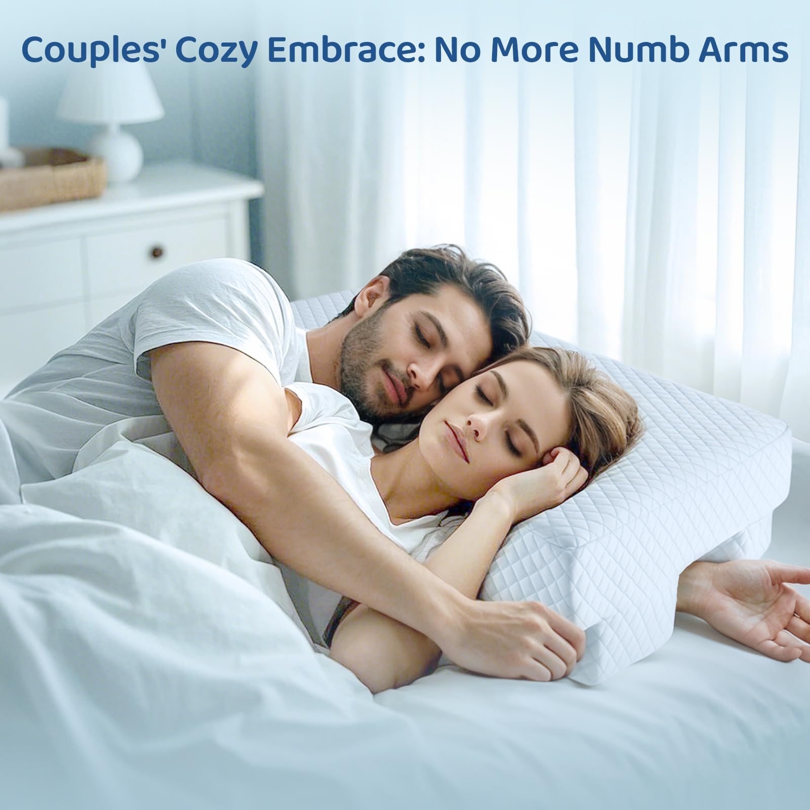 PILLOW WITH ARM HOLE PROVIDES ERGONOMIC SUPPORT FOR ARM RELIEF: The side sleeper pillow with arm hole has a top layer of CertiPUR-US memory foam and bottom layers of supportive base foam, which provide superior support while maintaining a soft touch. If you’re experiencing rotator cuff pain due to injury or poor sleeping posture, the cuddle pillow with arm hole can help. By placing your arm in the channel, it takes stress off the lower shoulder and arm, allowing you to sleep as peacefully as a baby without waking up with arm tingle/numbness and shoulder pain.