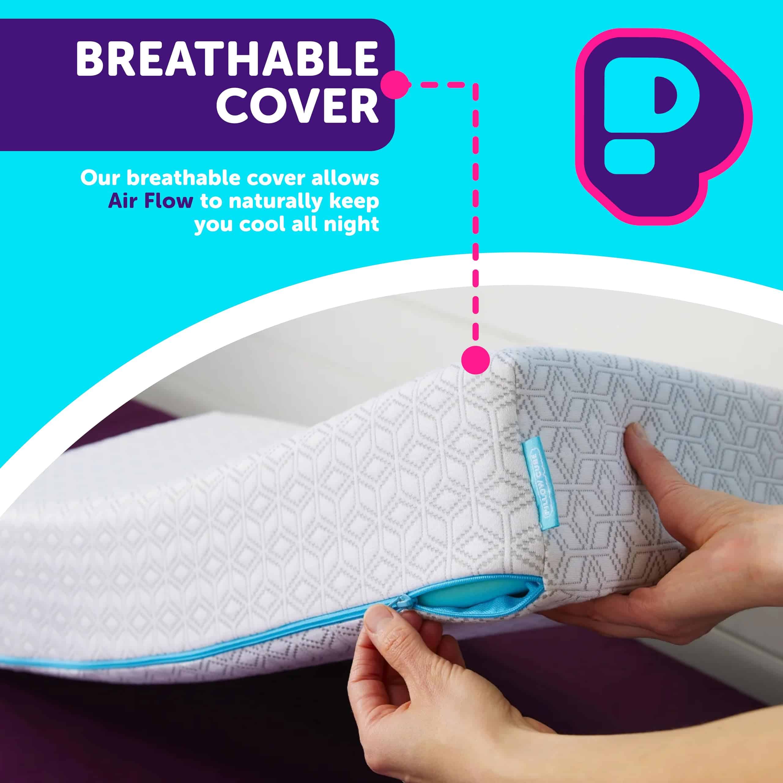 3. SUEÑO CÓMODO – Con una funda de almohada suave y elástica, una cubierta transpirable para refrigeración natural y nuestro núcleo de espuma Aero reguladora de temperatura, el Side Cube garantiza una noche de sueño confortable.