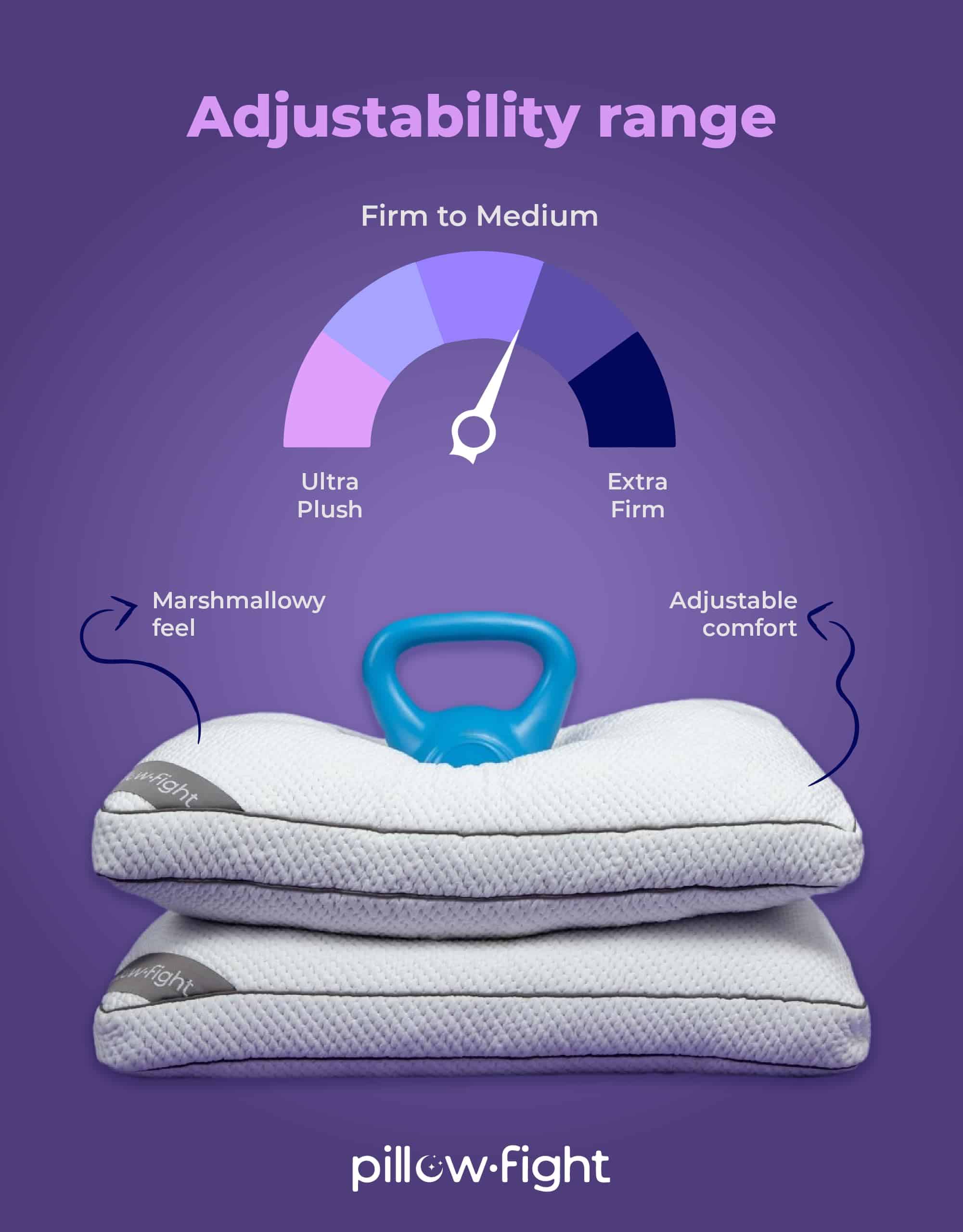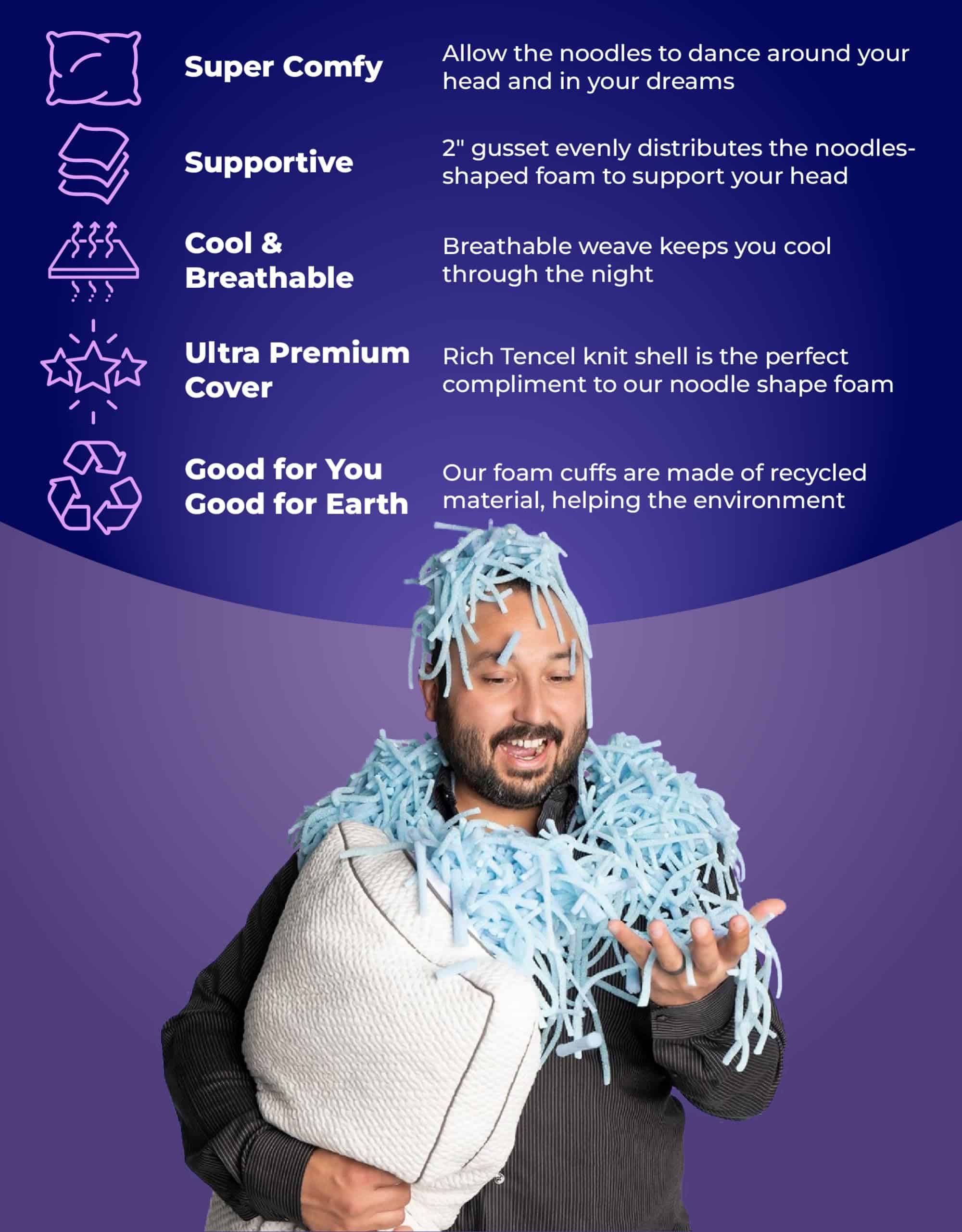 2. CONFORT PERSONALIZABLE PARA CADA DORMILÓN: La exclusiva mezcla de espumas de memoria y reactivas en forma de fideos de Pillow Fight satisface a los durmientes de espaldas, de costado y de estómago.