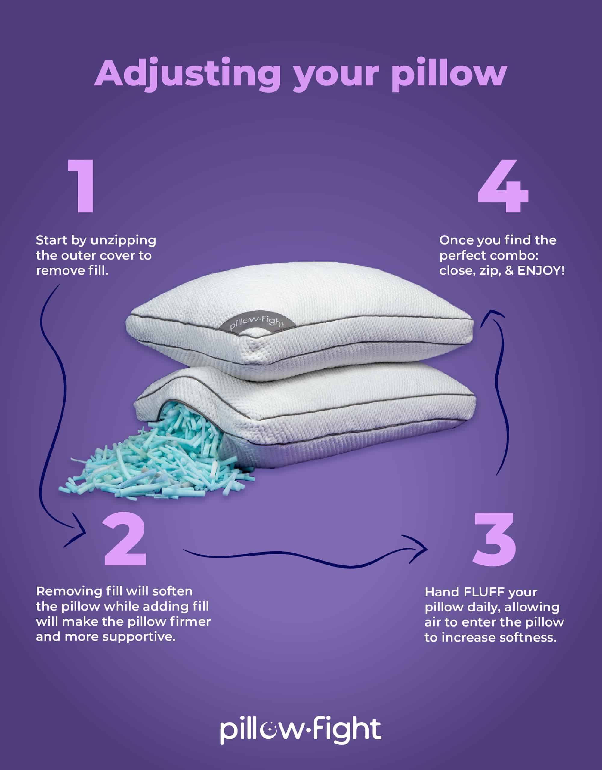5. MANTENIMIENTO FÁCIL PARA USO SIN PROBLEMAS: Diseñado con características amigables para el usuario, Pillow Fight viene con un atributo único que simplifica el mantenimiento, garantizando una experiencia de sueño duradera y satisfactoria. Resuelve tu incomodidad nocturna con facilidad de uso, perfecto para personas con diferentes preferencias.