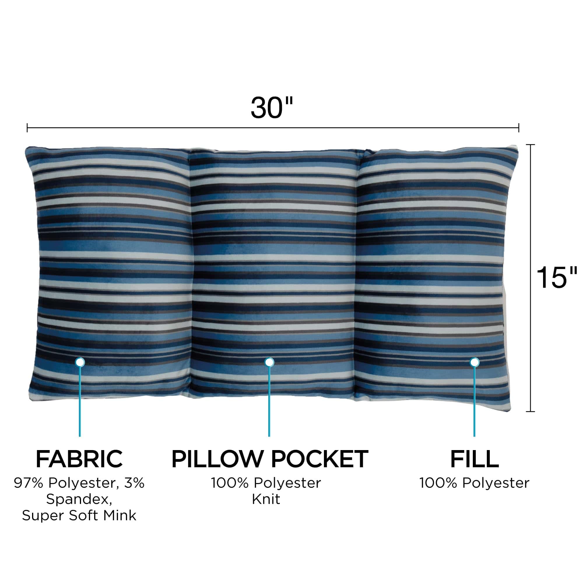 Tela: 97% poliéster, 3% spandex, 250 gsm, Bolsillo de almohada de piel de visón super suave: 100% poliéster de punto, 90 gsm Relleno: 100% poliéster, 13 oz con paquete de bolitas de gel calentable en el microondas