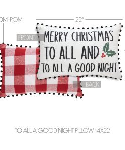 Añade un toque de estilo festivo con esta almohada decorativa de Navidad. La almohada roja Annie To All a Good Night mide 14 por 22 pulgadas. La almohada rellena presenta un encantador estampado desgastado para una sensación vintage. El texto en negrita en negro dice, Feliz Navidad a Todos y a Todos Buenas Noches. El estampado está acentuado con un diseño de acebo en verde y rojo. El accesorio acogedor para el hogar se invierte a un estampado de cuadros rojos y blancos para un estilo de granja informal, mientras que un borde de mini pompones produce una apariencia cálida y alegre. Limpie según sea necesario. Coordina con la colección Annie Red Check de VHC para obtener un estilo de granja moderno para toda tu casa.
