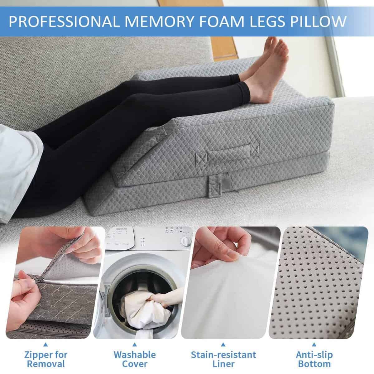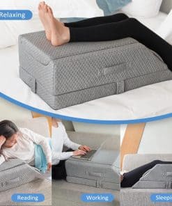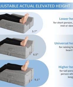 Almohadas Ajustables para Elevación de Piernas para Edemas Postoperatorios y más. Esta almohada para piernas ajustable en altura está diseñada para proporcionar un alivio cómodo y personalizado para diversos problemas de salud, como edemas postoperatorios, dolor de rodillas, caderas, tobillos, espalda y ciática. La Almohada de Cuña con Espuma de Memoria CertiPUR-US es una solución versátil que se adapta a las necesidades individuales.