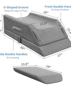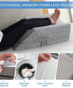 Esta almohada para piernas multifuncional y ergonómica está diseñada con una inclinación perfecta para adaptarse al contorno de las piernas. La ranura en forma de U es lo suficientemente amplia para apoyar ambas piernas y evitar que se deslicen y caigan, lo que es adecuado para la recuperación después de una cirugía. Además, se puede utilizar para elevar las piernas durante el descanso o sueño, aliviando la presión en las piernas, el dolor de espalda y el dolor de ciática.