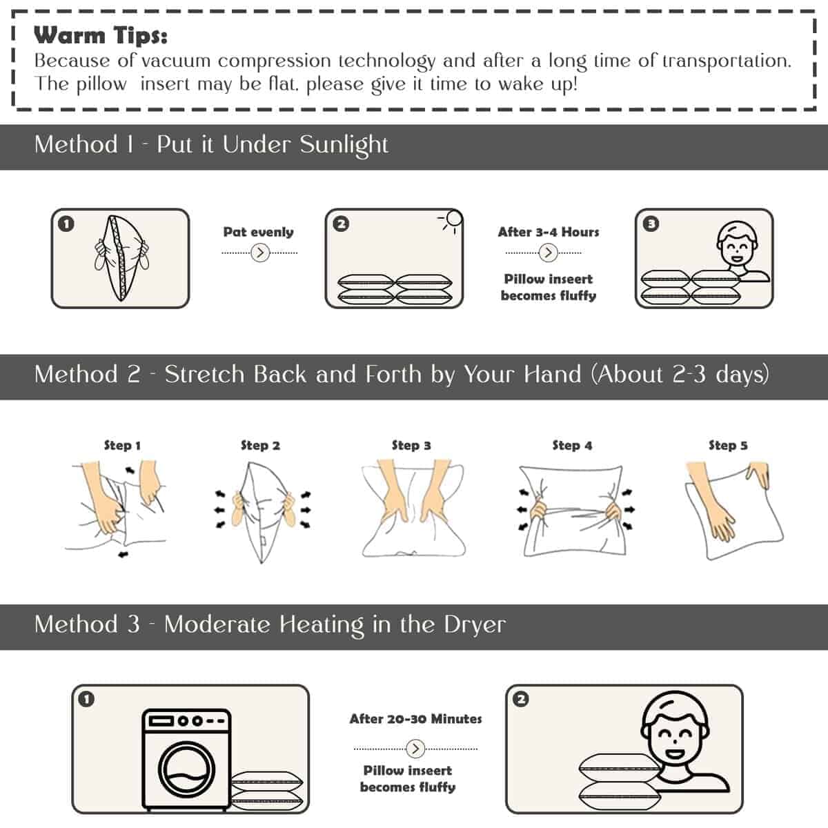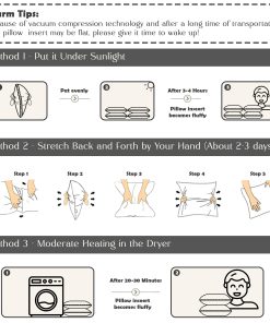 3. ESPOPO PARA COMODIDAD: Nuestras almohadas firmes king necesitan de 48-72 horas para inflarse por completo. Acelera el proceso colocándolas al sol durante unas horas o secándolas con bolas de tenis envueltas en calcetines.