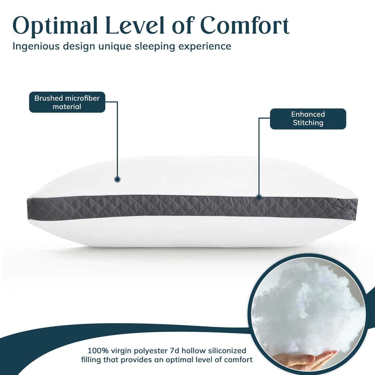 1. CALIDAD PREMIUM: Nuestras almohadas de cama están elaboradas con microfibra cepillada y rellenas con un 100% de poliéster virgen hueco siliconizado 7D para un confort óptimo y un despertar energizante.