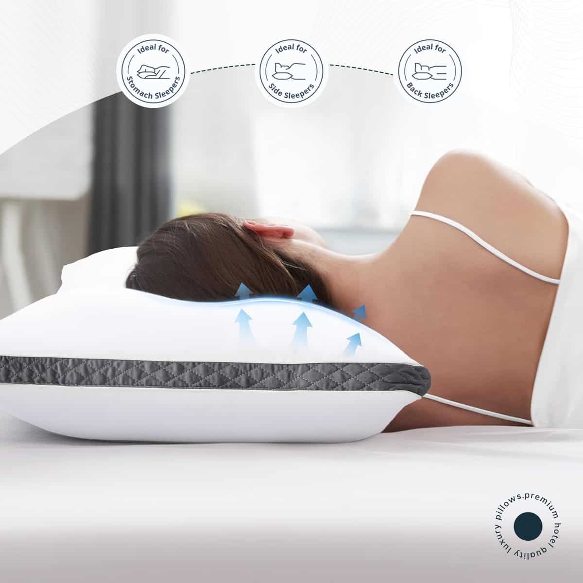 4. DURADERAS Y DE APOYO: Las almohadas de Lux Decor Collection son transpirables y amigables con la piel, adecuadas para varias posiciones de dormir, y proporcionan un apoyo adecuado para la cabeza, cuello y hombros.