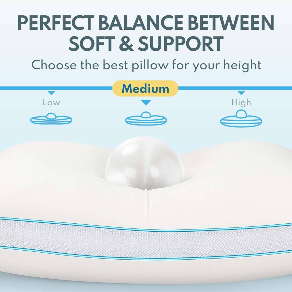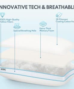 2. Relleno de Espuma con Memoria y Fibra Disfruta lo mejor de ambos mundos con nuestra combinación única de espuma con memoria y relleno de fibra de alta calidad. Esta mezcla ofrece una suavidad y soporte sin igual, acunando perfectamente tu cabeza y cuello para un sueño profundo y reparador.