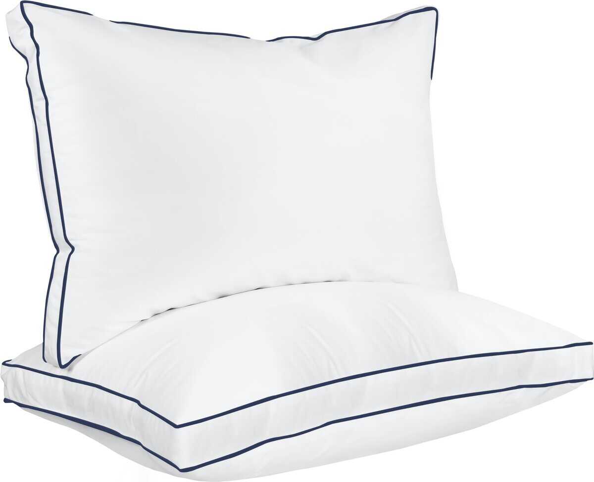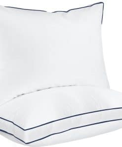 1. Almohadas con fuelle – Juego de 2 almohadas blancas con fuelle y ribete azul marino y doble costura que le dan un aspecto sofisticado a las almohadas y también mejoran su durabilidad.