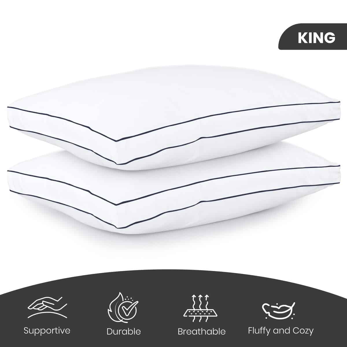 2. Tamaño King – Cada almohada proporciona un soporte adecuado para tu cabeza, cuello y hombros.