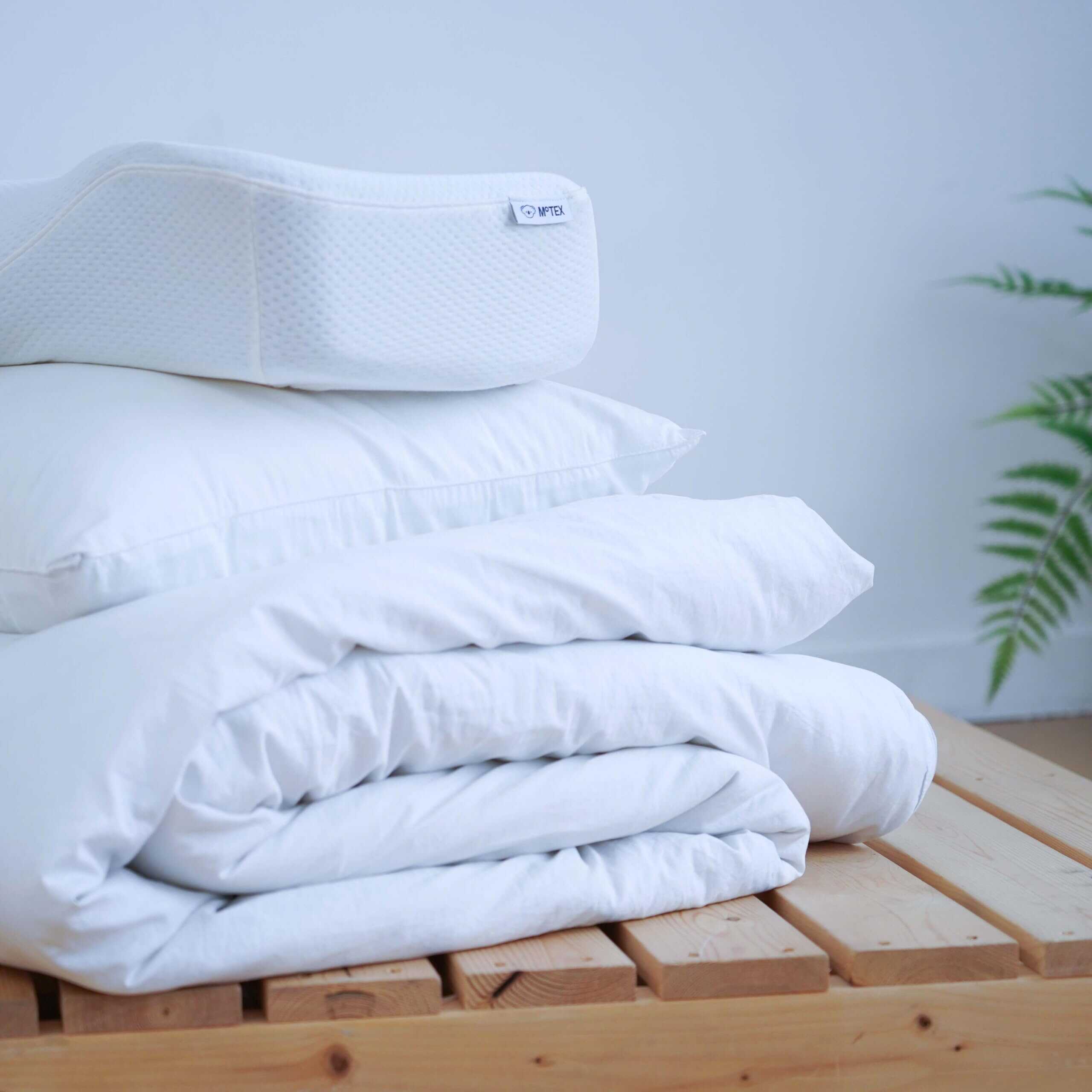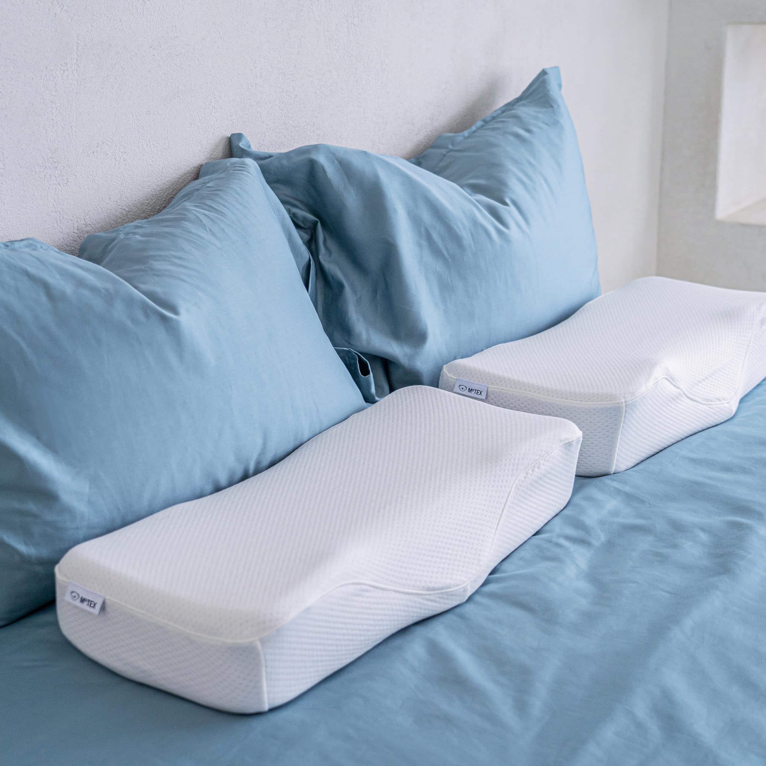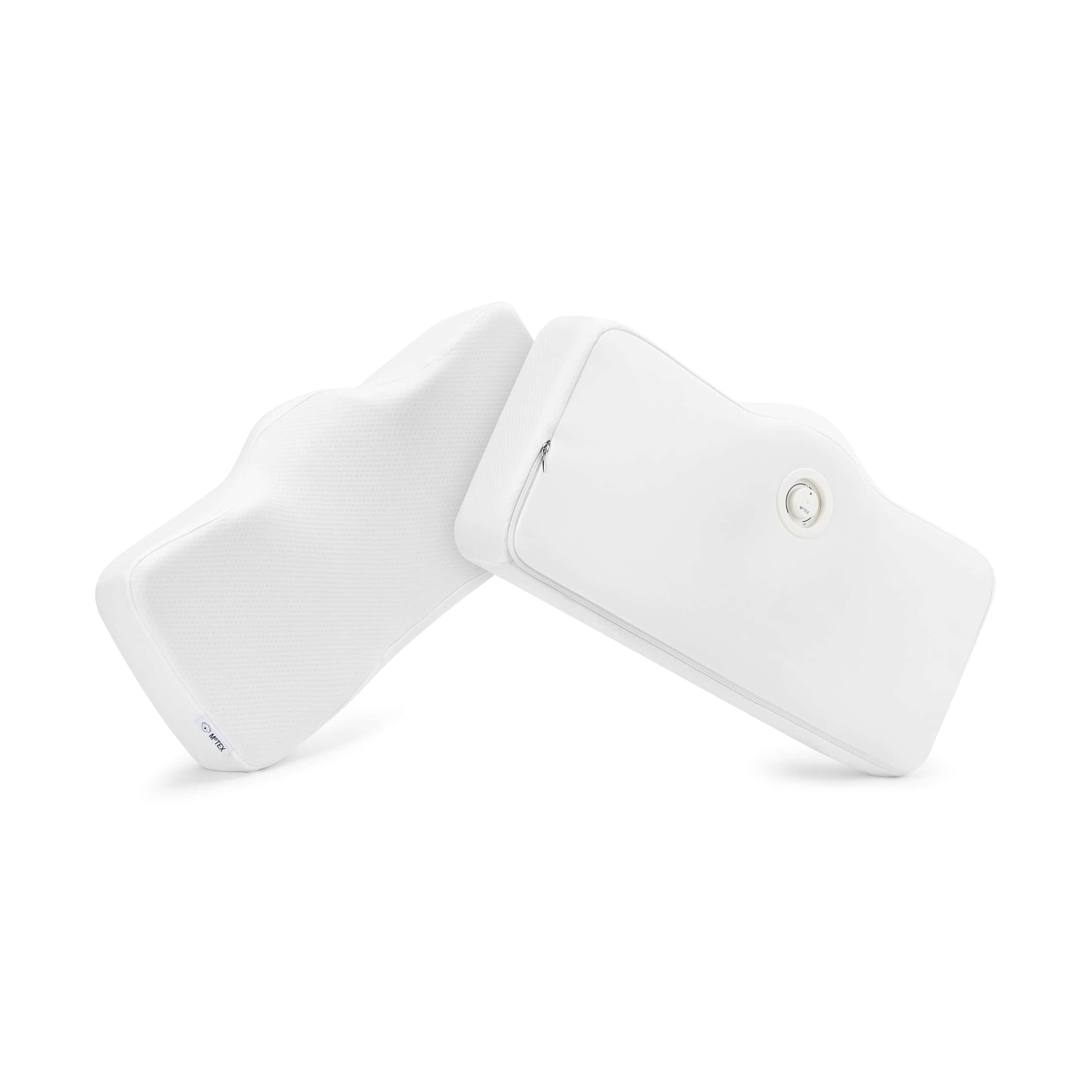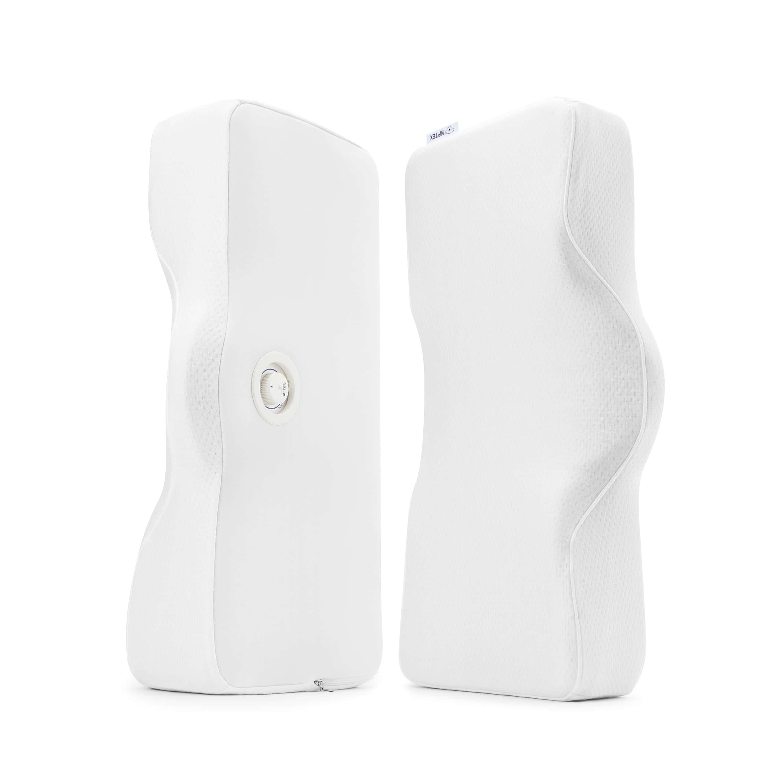 Almohadas de espuma viscoelástica ajustables en altura Motex para dormir con soporte para el cuello almohadas ergonómicas con funda de tela modal lavable en color blanco. Este modelo en tamaño M-L cuenta con espuma viscoelástica transpirable para proporcionar el mejor confort durante el descanso.