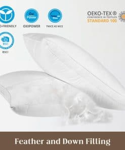 1. Almohadas de Pluma de Ganso Premium: El relleno es 90% plumas de ganso grises y 10% plumón de ganso, 36-51 oz de relleno. Los rellenos de plumas y plumón son materiales de alta calidad y confiables seleccionados, y han sido tratados para ser inodoros, almohadas suaves que le brindan una experiencia de sueño tranquila.