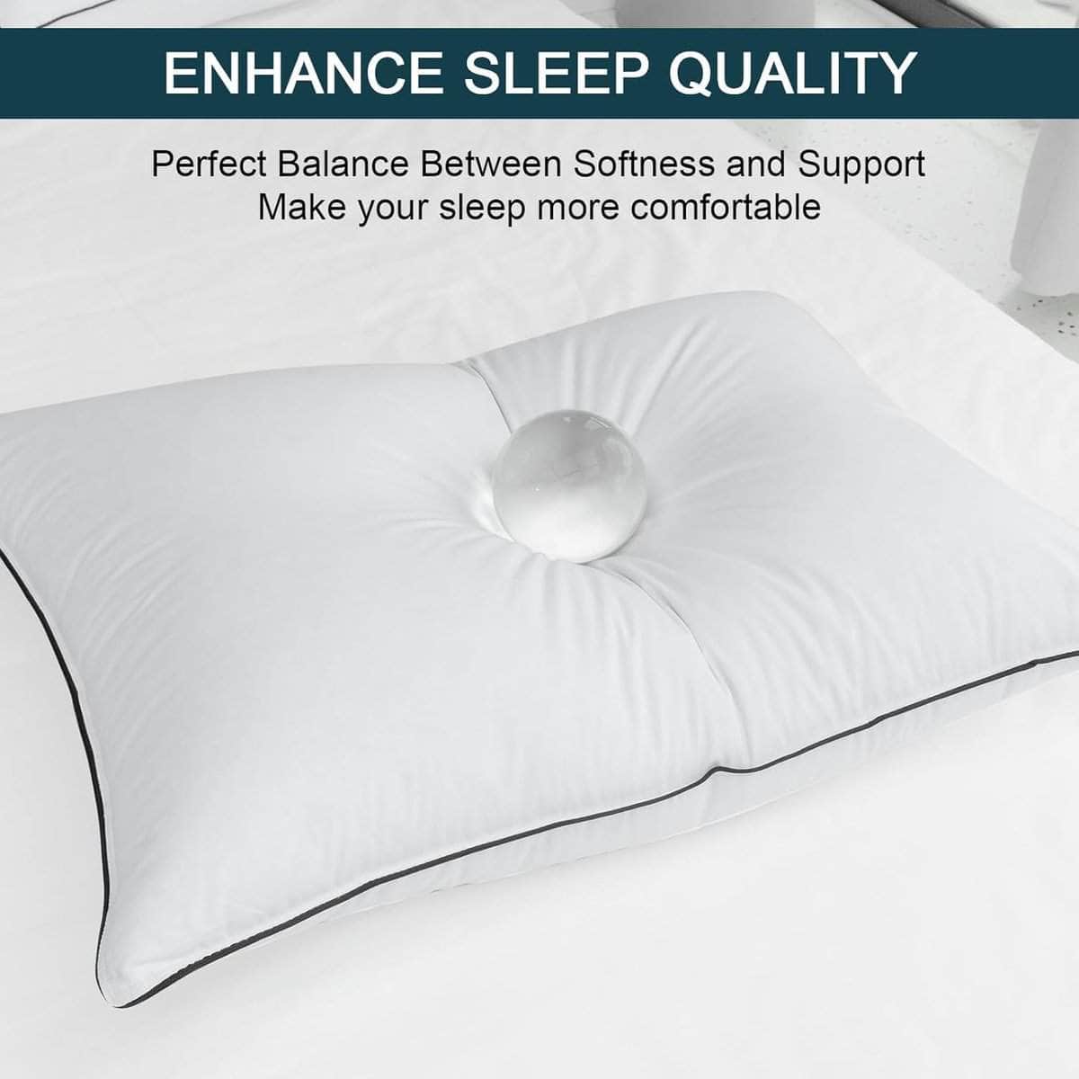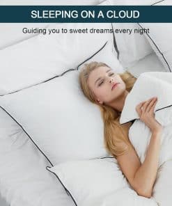 3. MÁS DETALLES SOBRE ESTA ALMOHADA DE CAMA – Nuestras almohadas de plumas están cosidas doblemente y confeccionadas de manera experta, ofrecen un ribete negro distintivo que asegura tanto una apariencia lujosa como evita que se escape alguna pluma. Adéntrate en un mundo de tranquilidad inigualable y suavidad aterciopelada con una funda de mezcla de algodón de 480 hilos. Prepárate para ser abrazado por la elegancia silenciosa y suavidad sedosa de nuestra almohada de plumas.