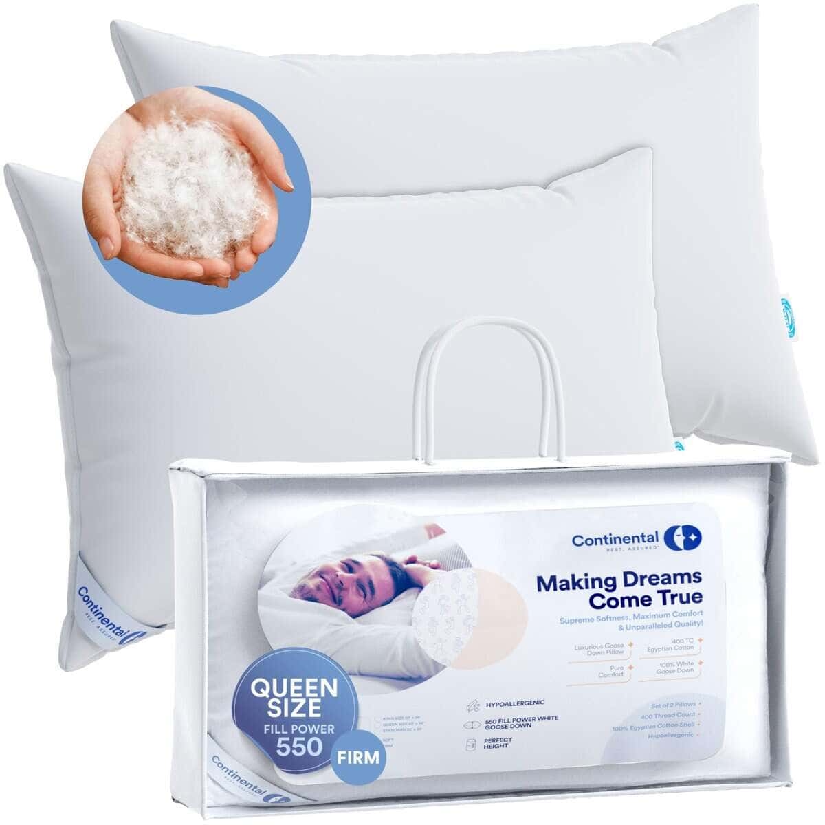Almohadas de plumas de lujo Continental Bedding tamaño